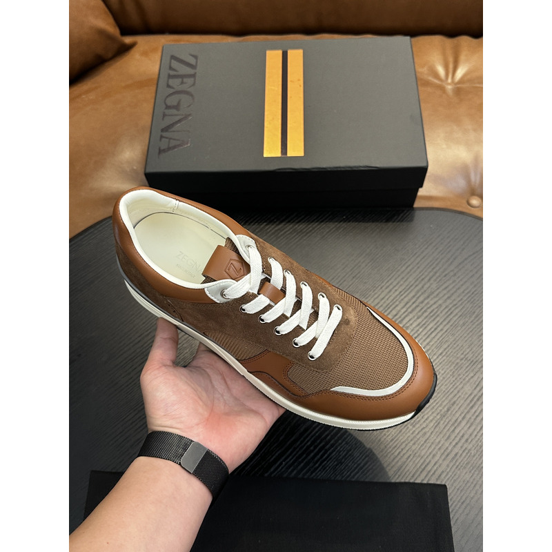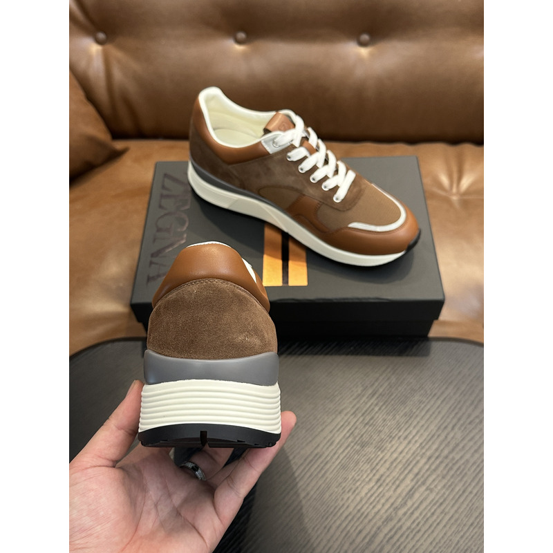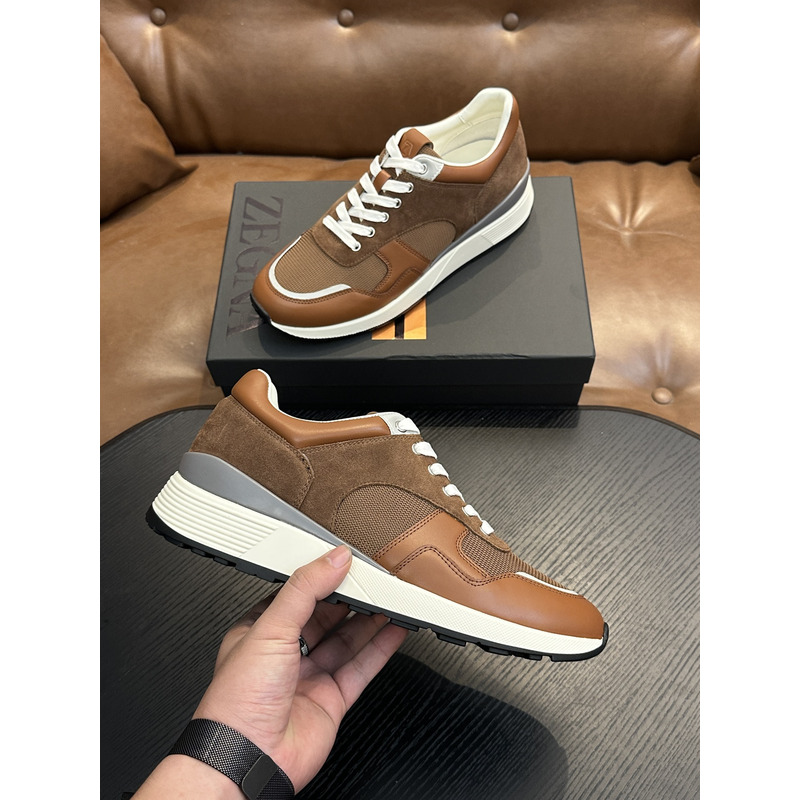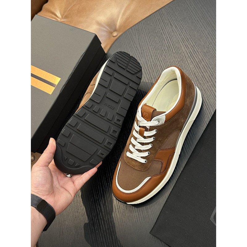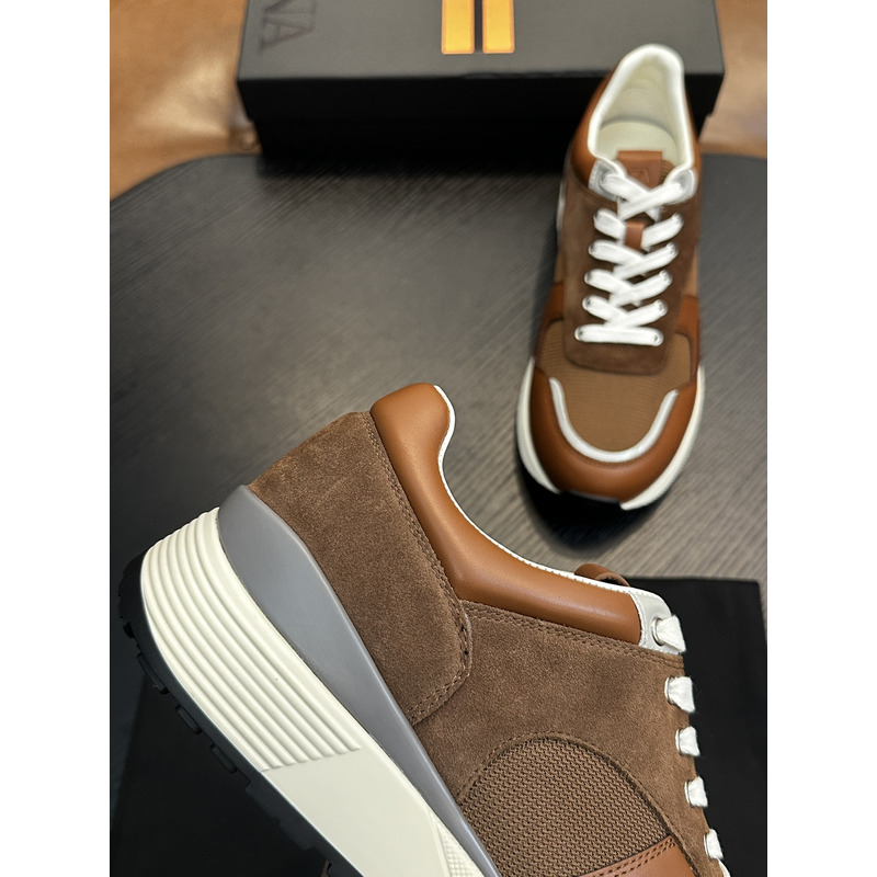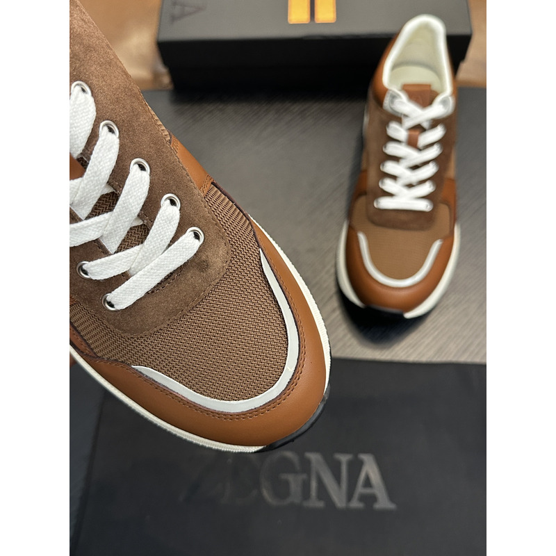 Zegna Brown Suede Mesh And Leather Low-Top Sneakers