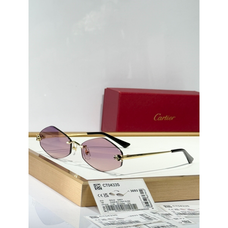 Cartier Panthère CT0433S Rimless Sunglasses In Gold-Tone Metal With Violet Lenses