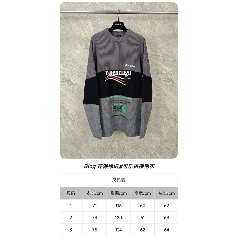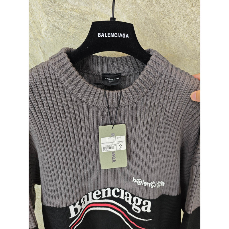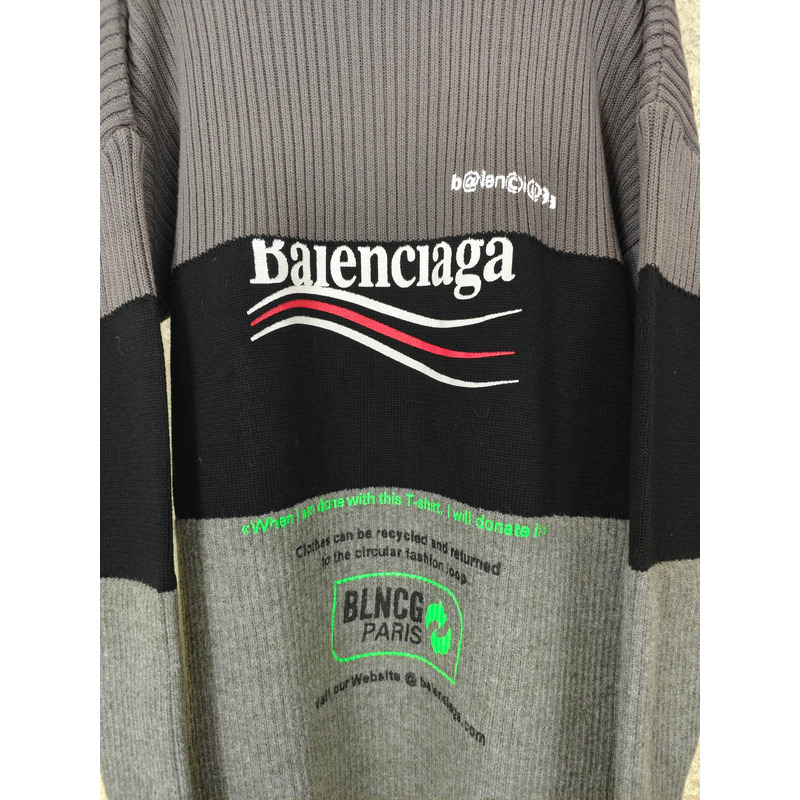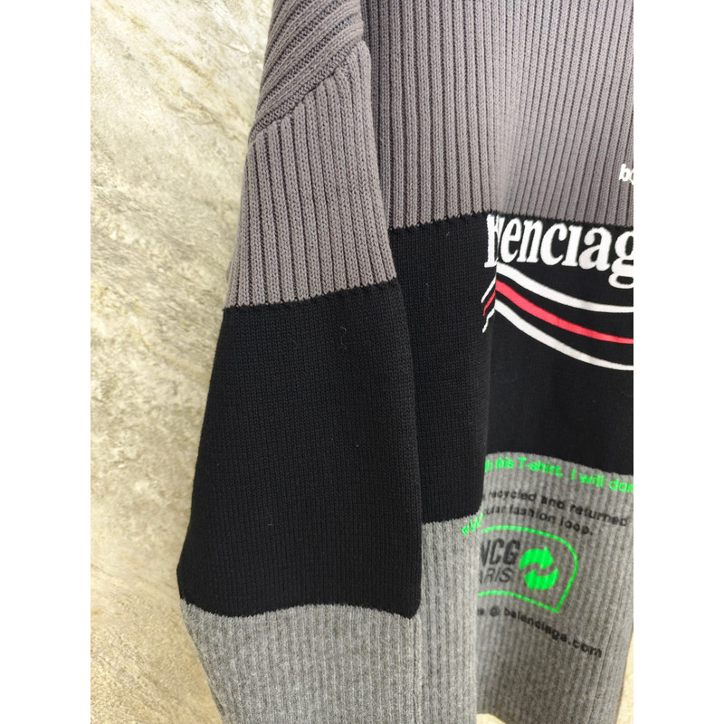 Balenciaga Logo-Print Cotton Paneled Sweater Grey / Black