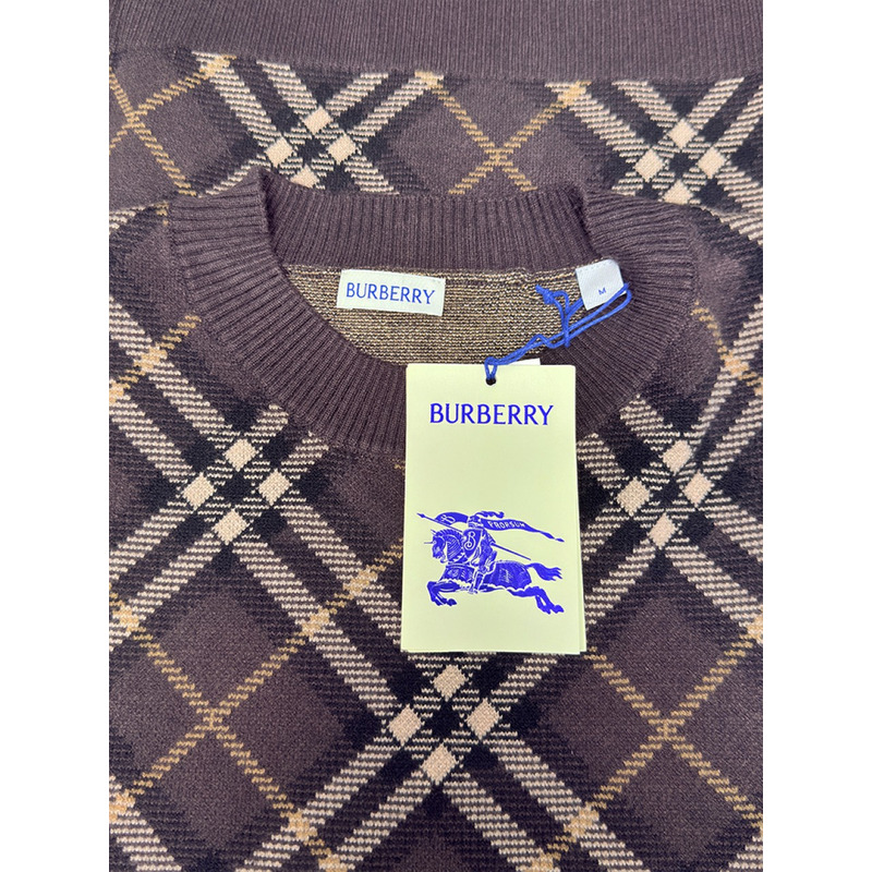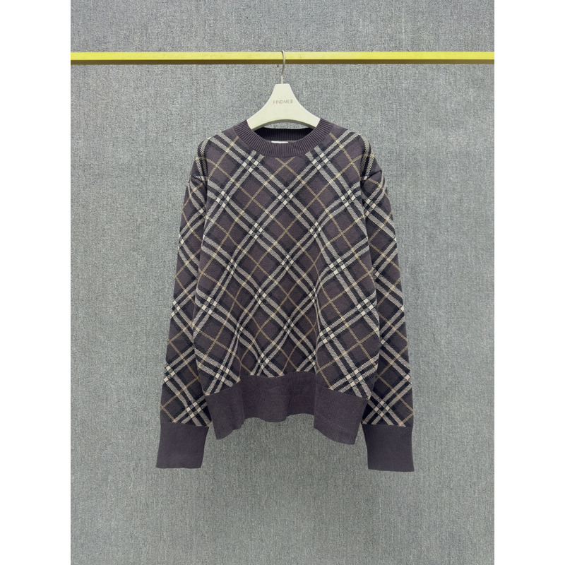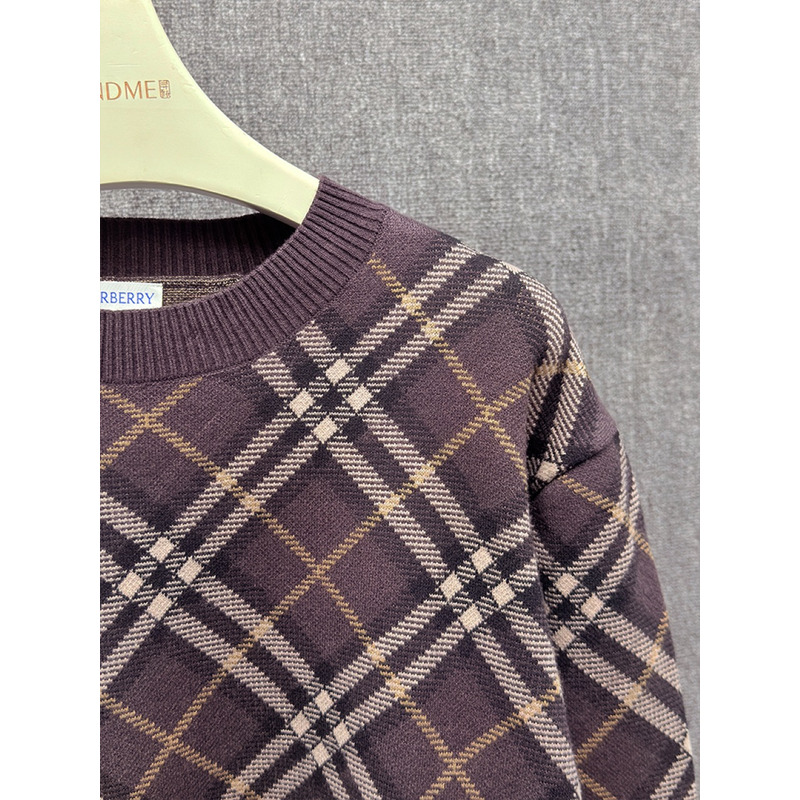 Burberry Check Wool Cashmere Blend Sweater in Truffle brown
