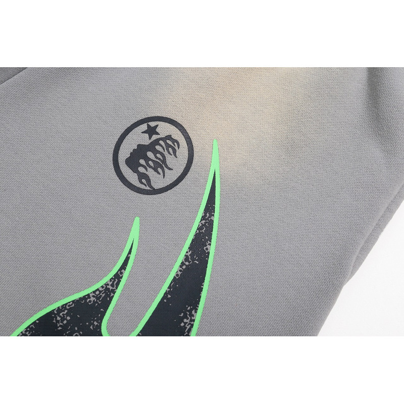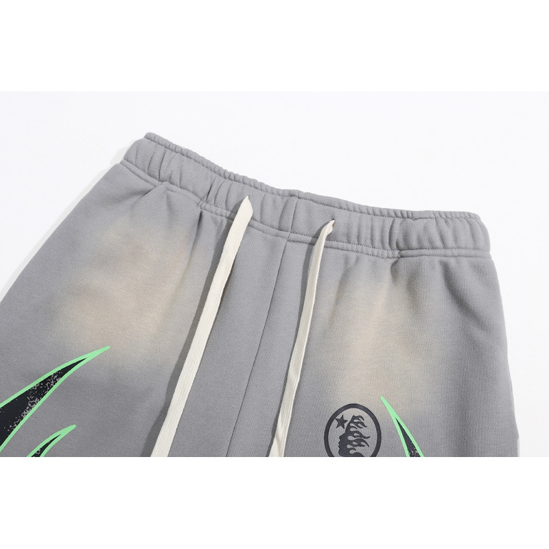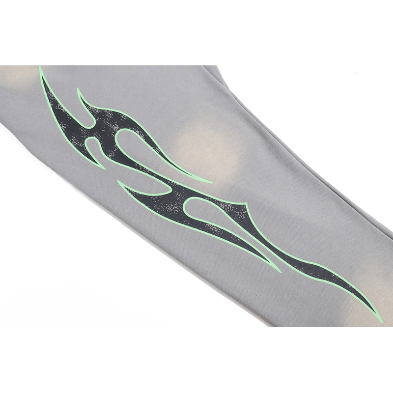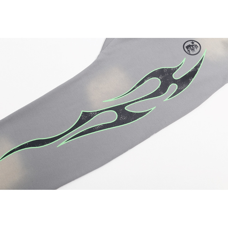 Hellstar Tie-Dye Sweatpants with Flame Logo Print In Grey