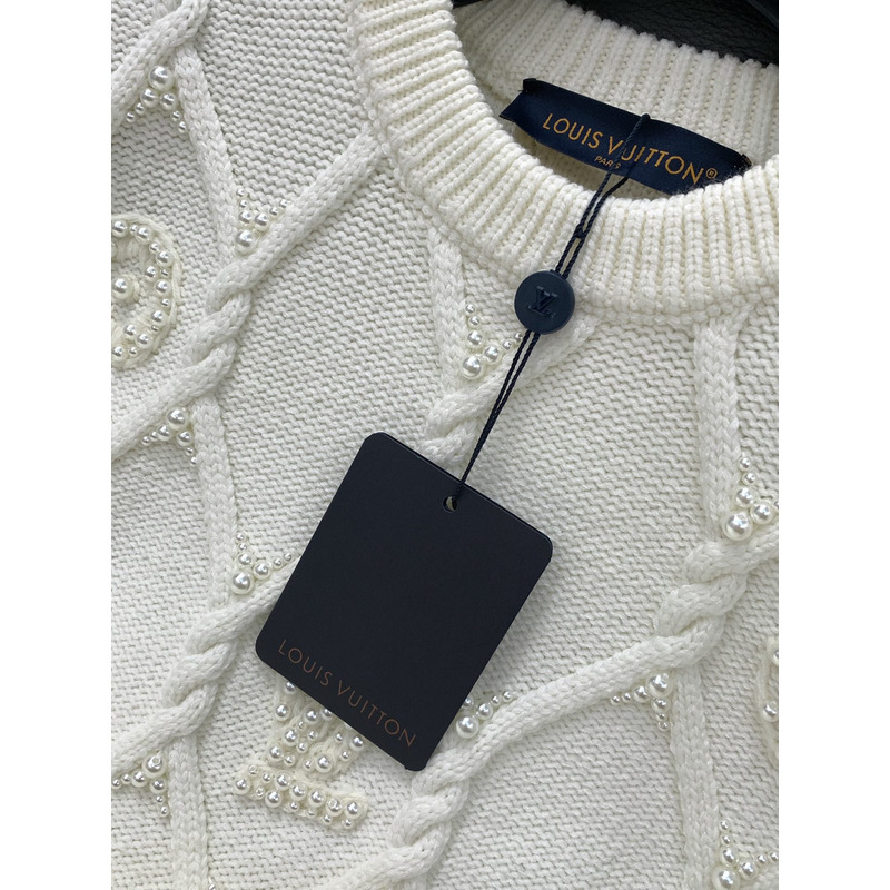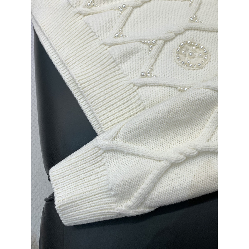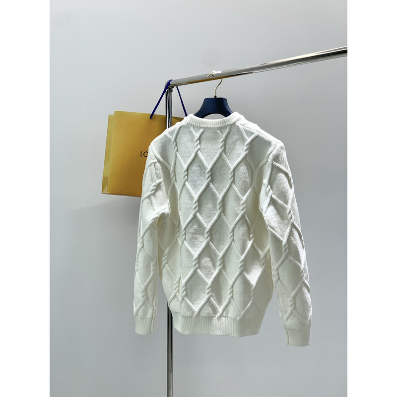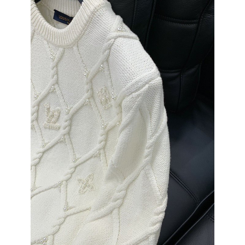 Louis Vuitton Embellished Cable Knit Wool Blend Jumper White