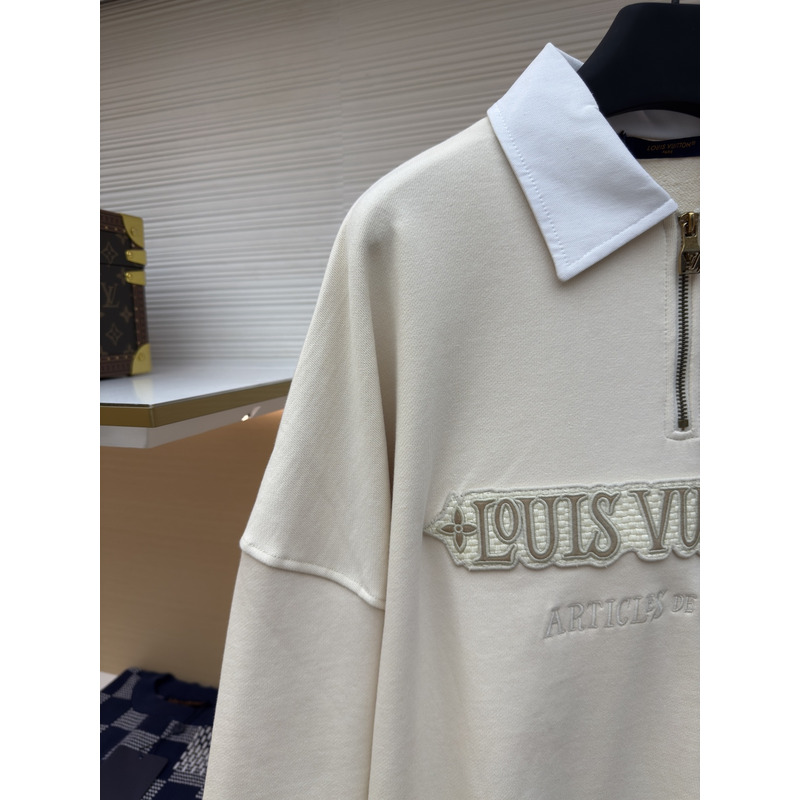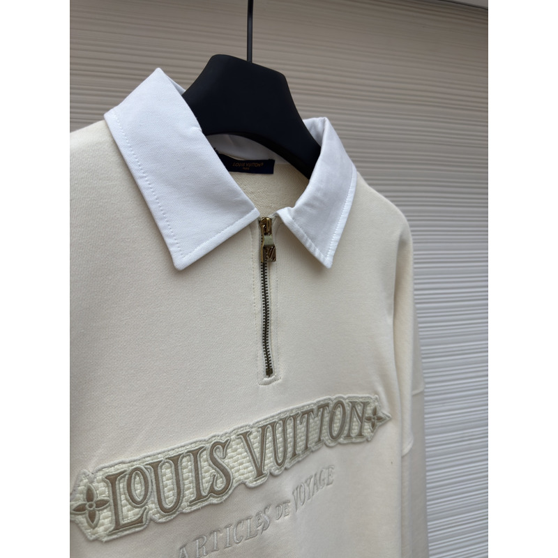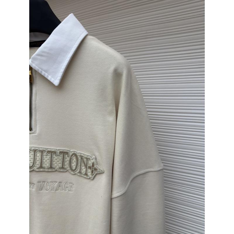 Louis Vuitton Embellished Half Zip Sweatshirt Cotton Light Beige