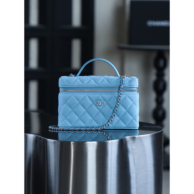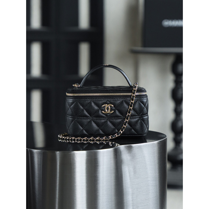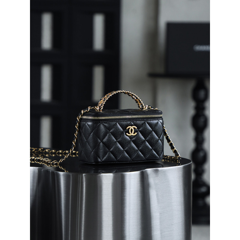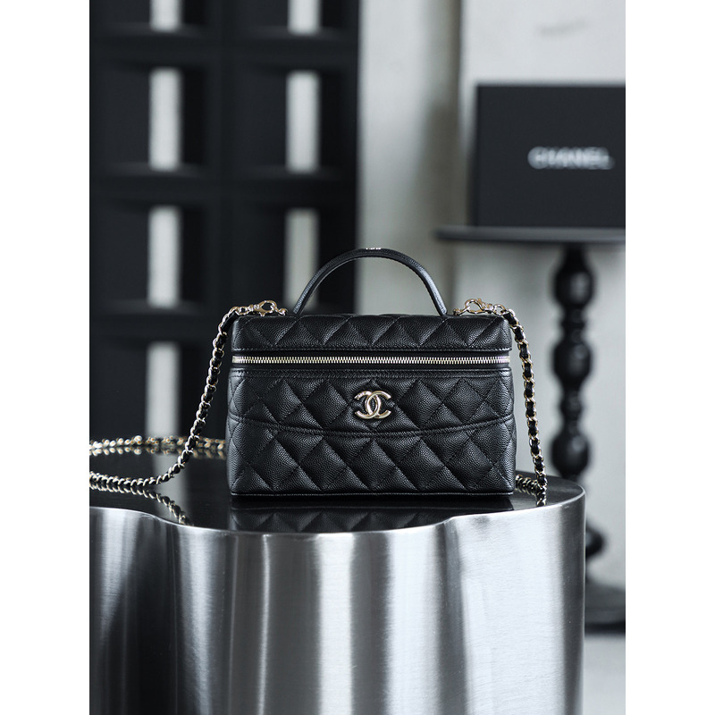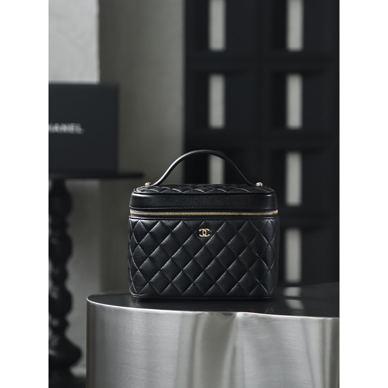 Chanel Black Quilted Vanity Bag with Top Handle 24K Gold