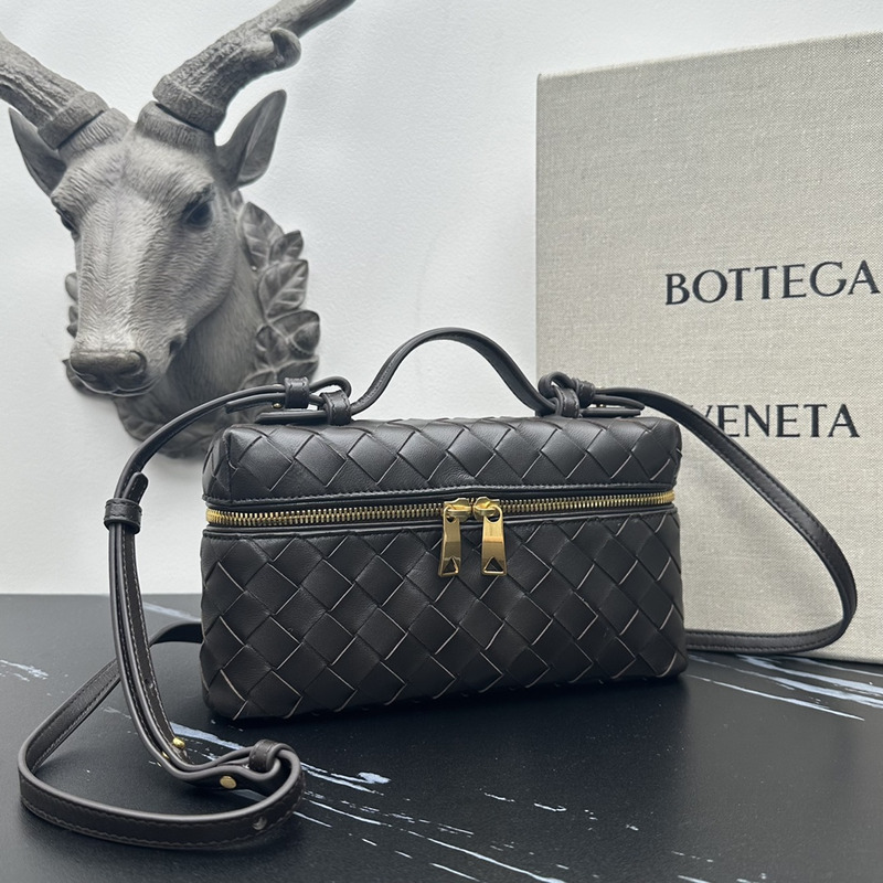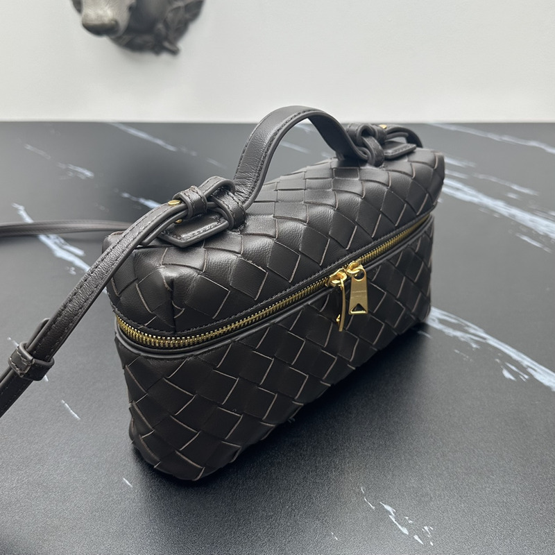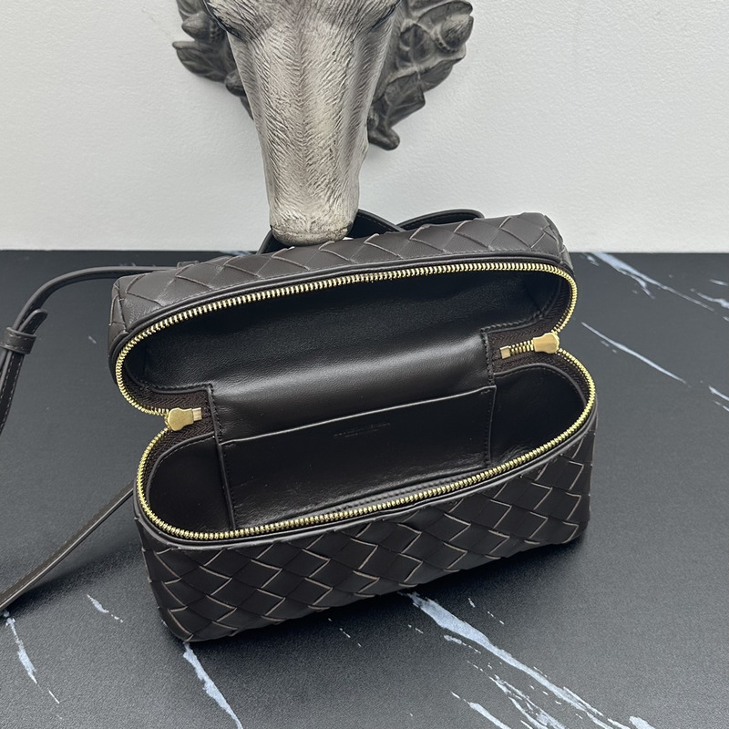 Bottega Veneta Bang Bang Intrecciato Leather Vanity Case Dark Brown