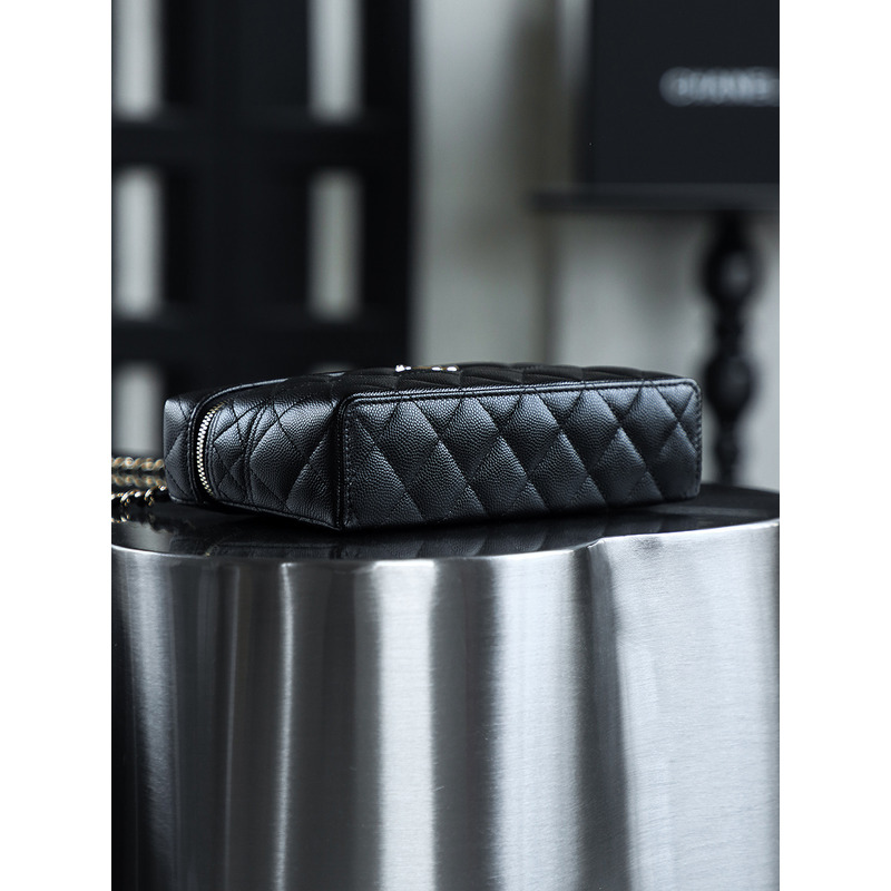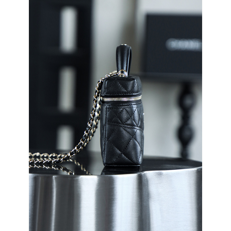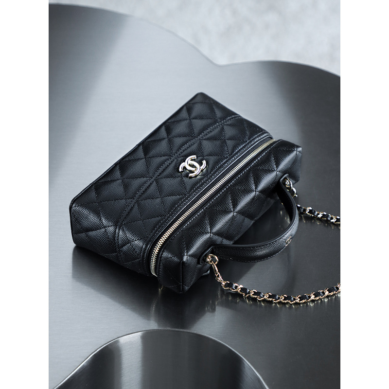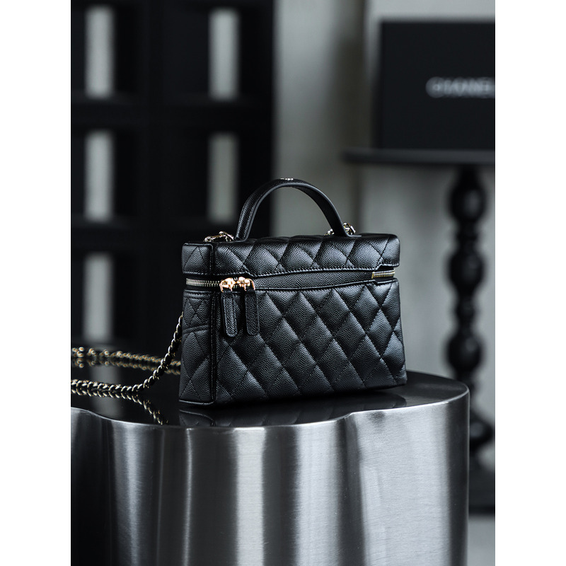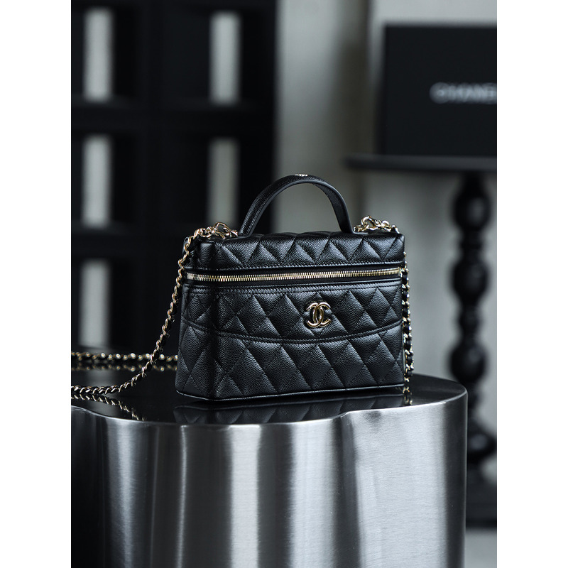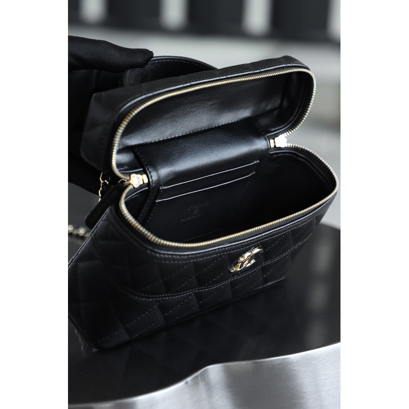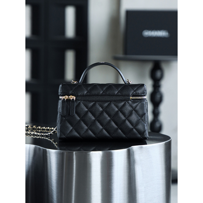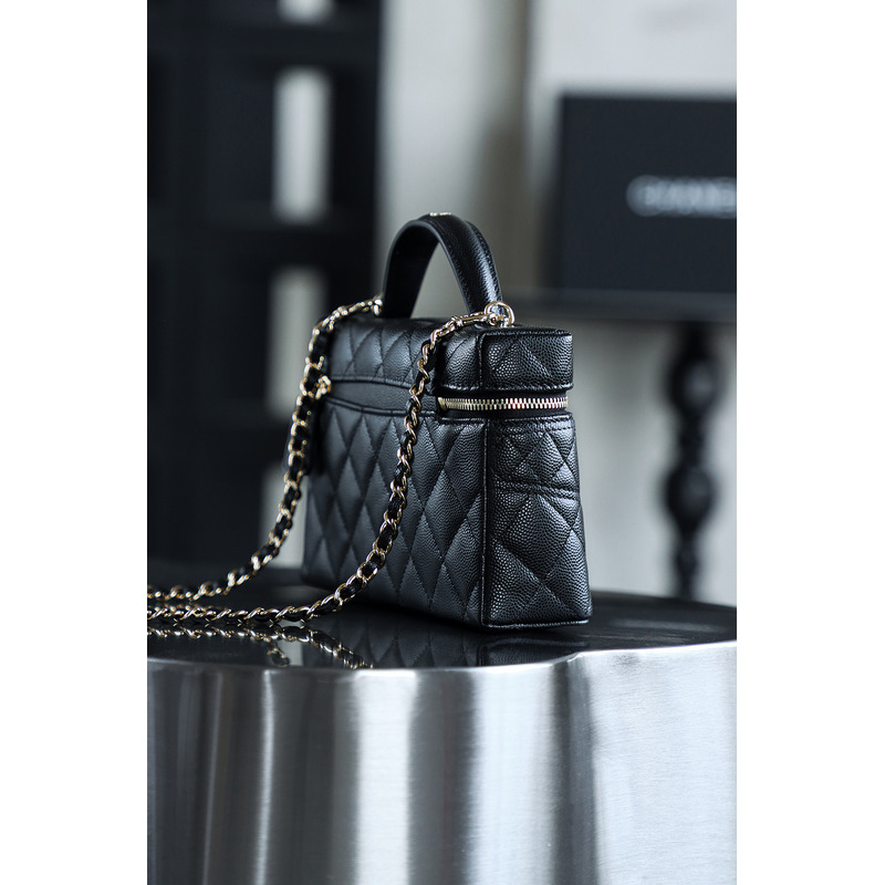 Chanel Black Quilted Vanity Case with Top Handle In 24K Gold