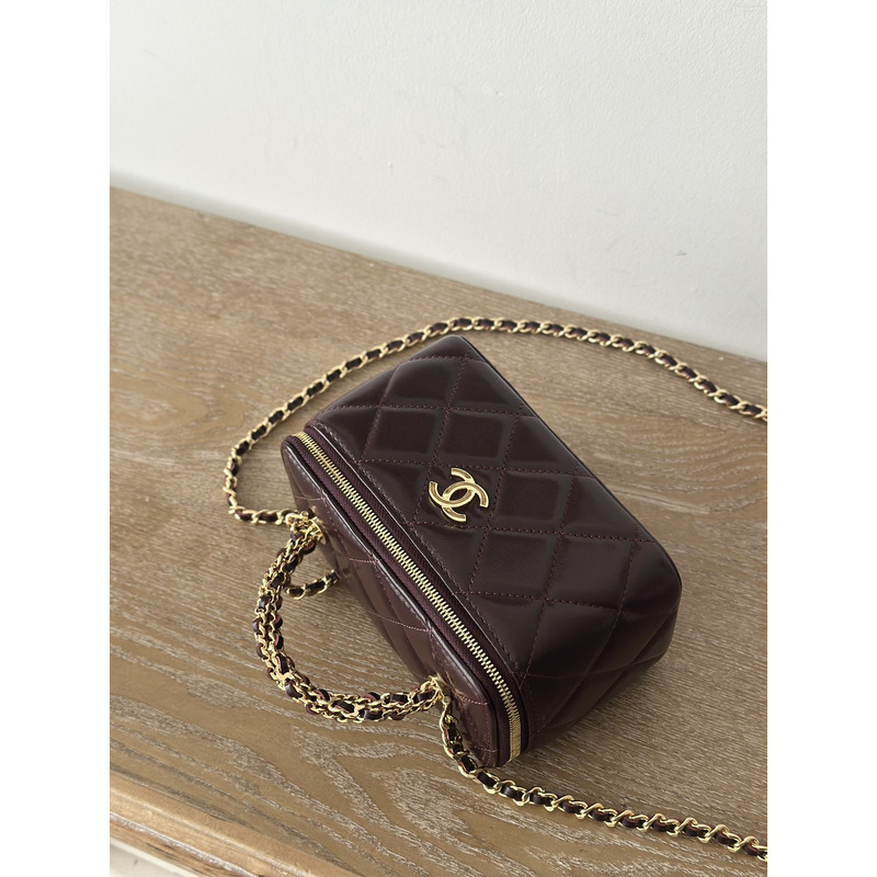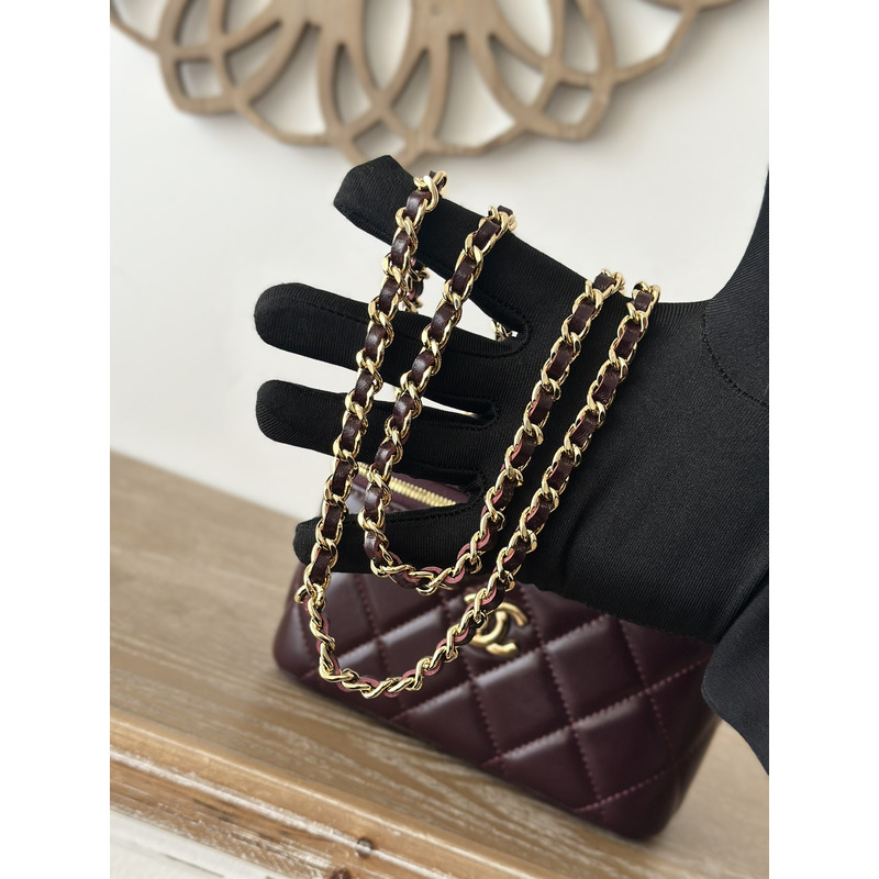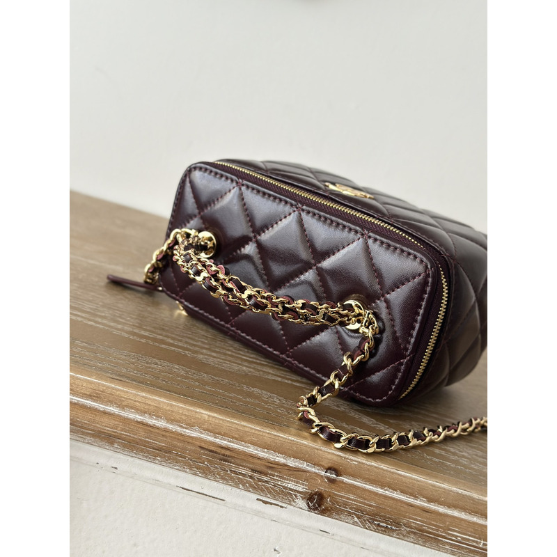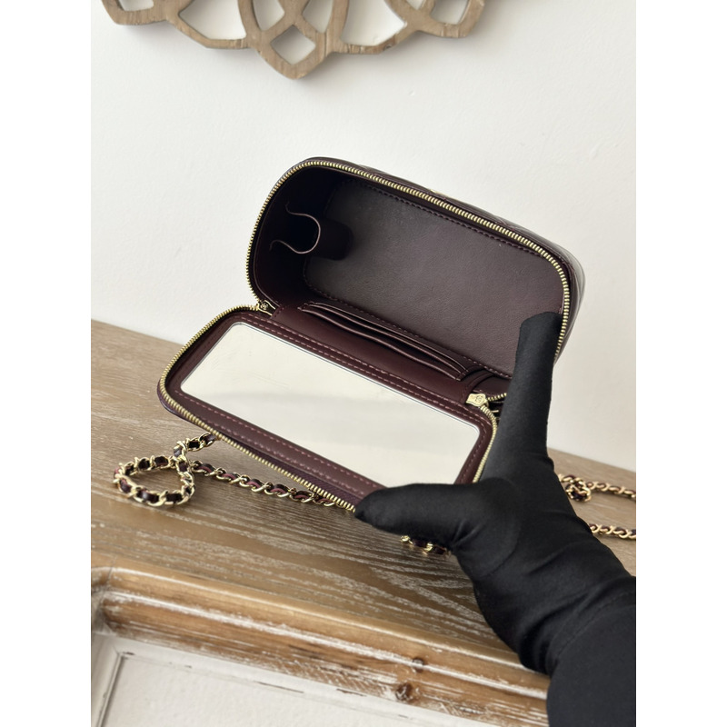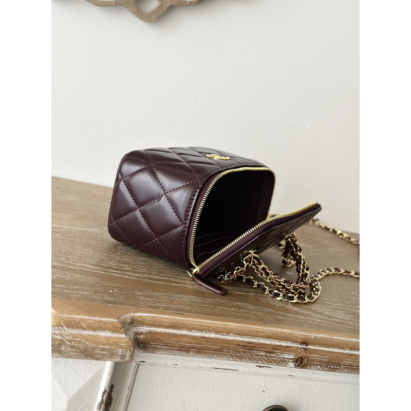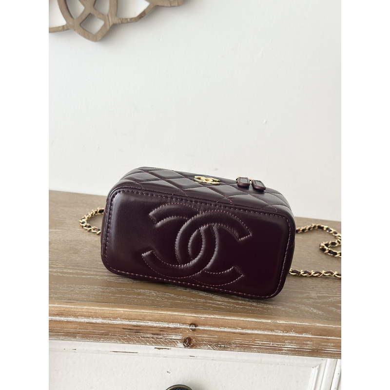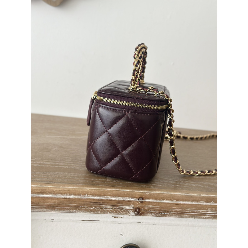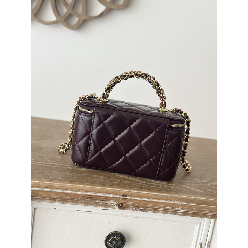 Chanel Lambskin Quilted Small Top Handle Vanity Bag Burgundy