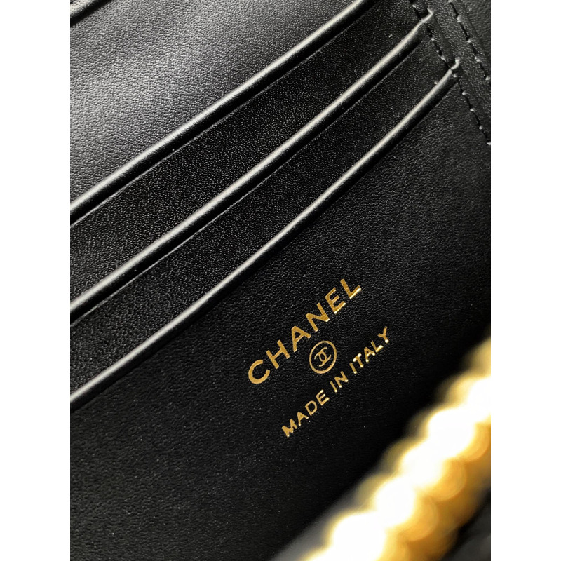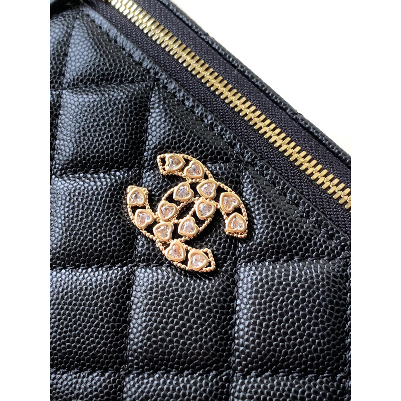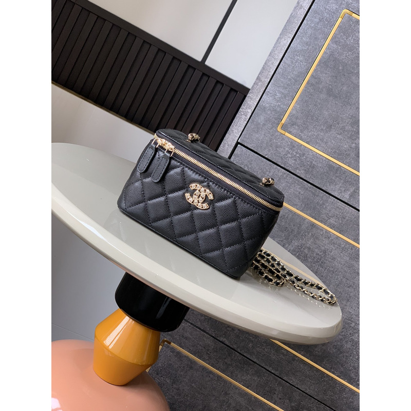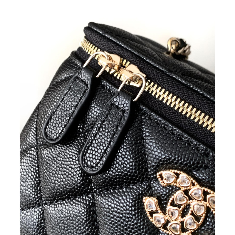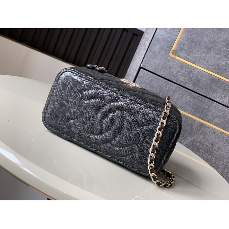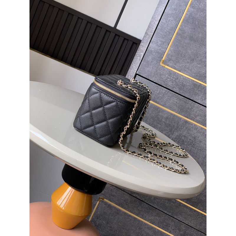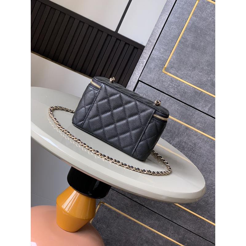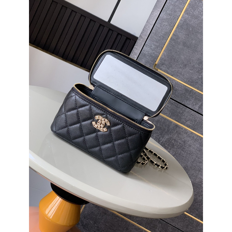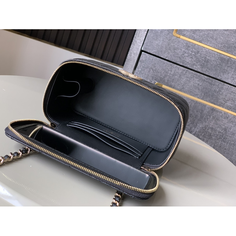 Chanel Quilted Vanity Case Grained Calfskin & Gold-Tone Metal In Black