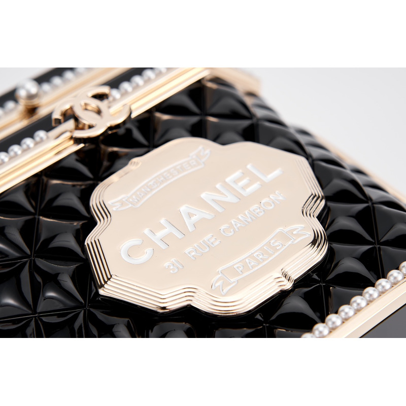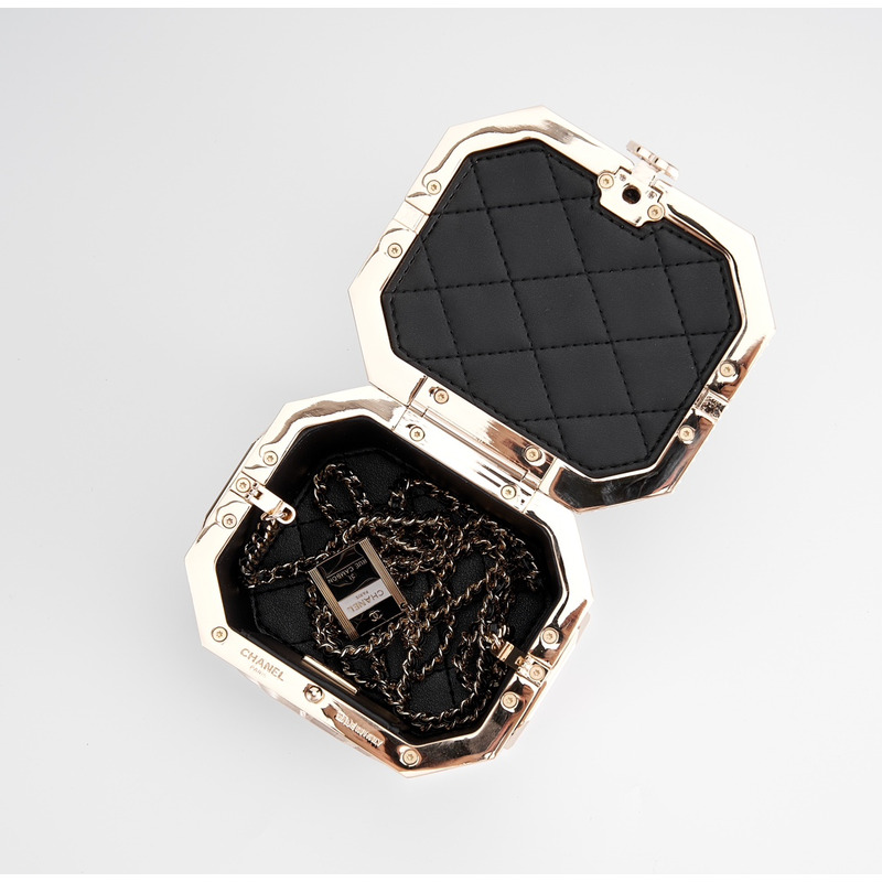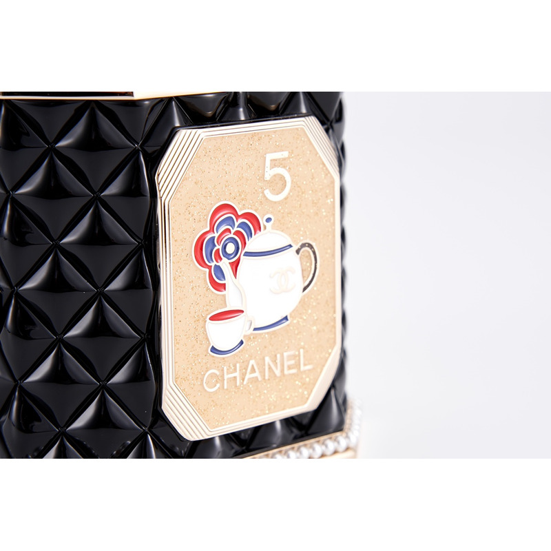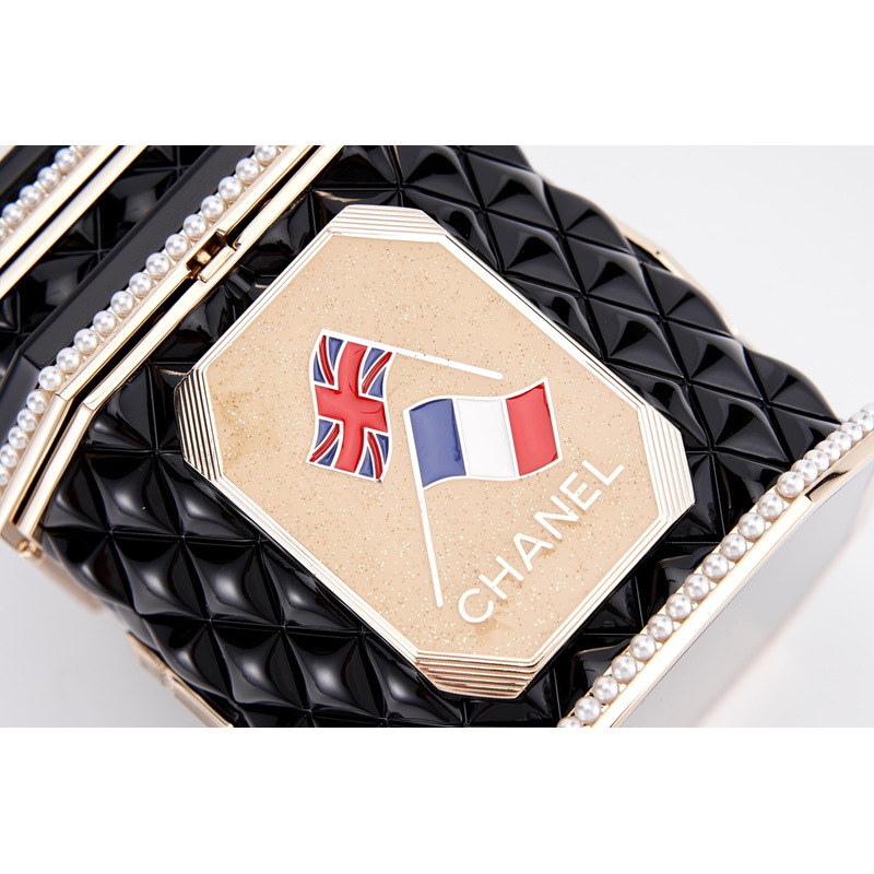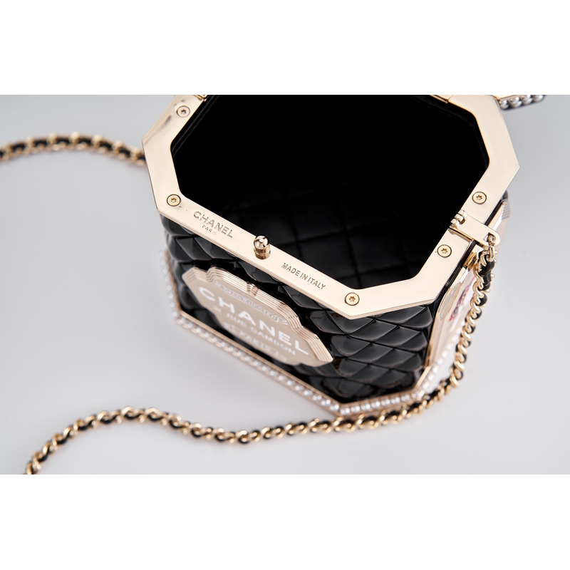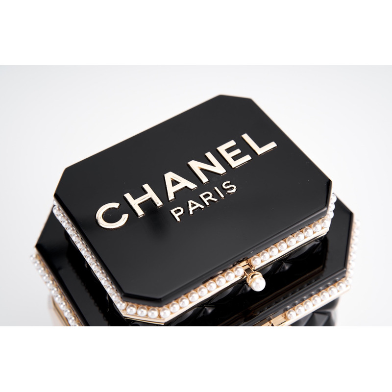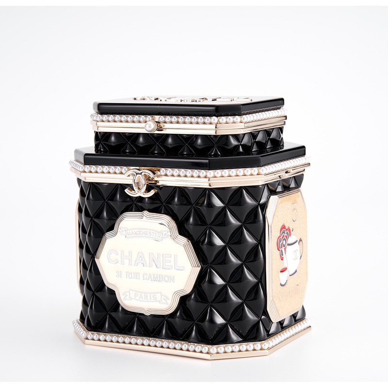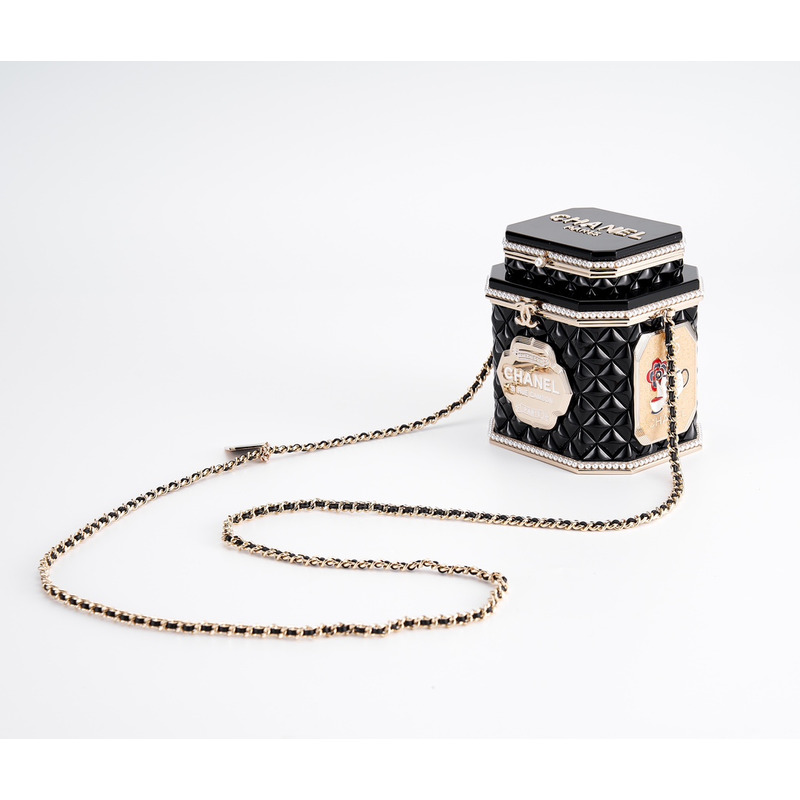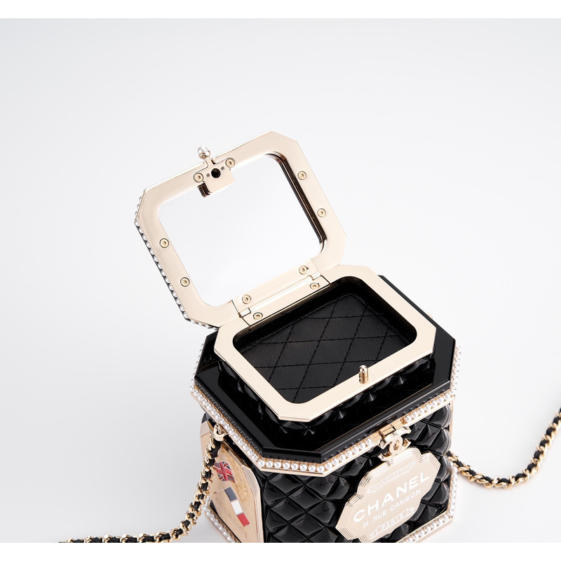 Chanel Tweed Tea Canister Box Bag With Embellished Trim & Chain Strap In Black
