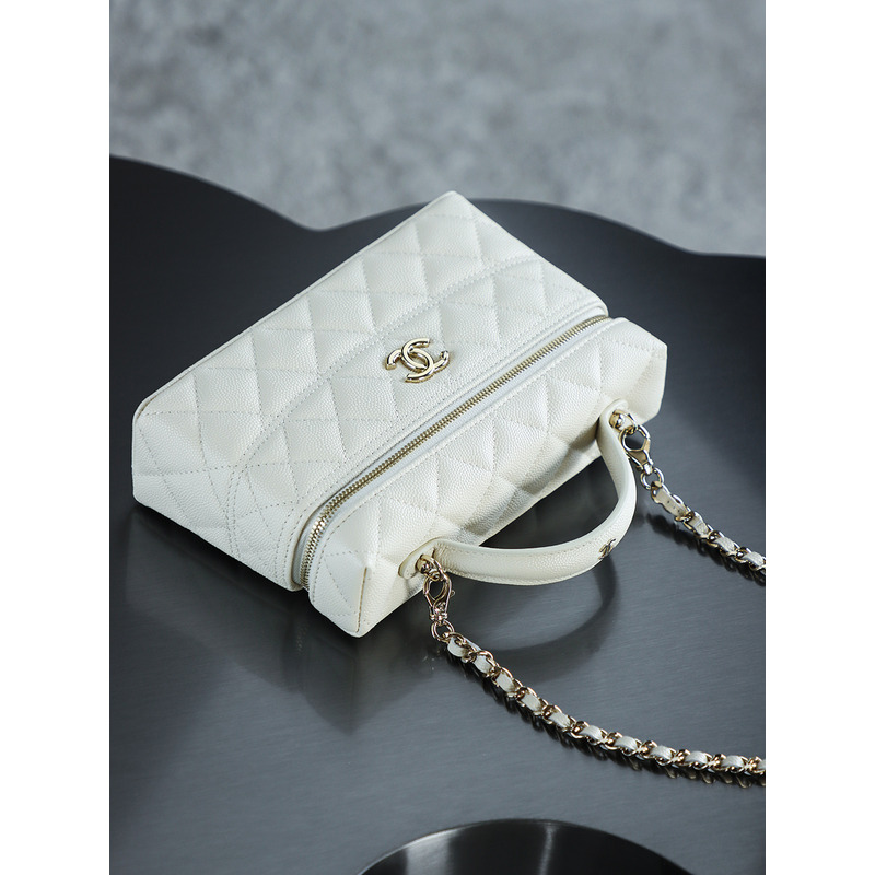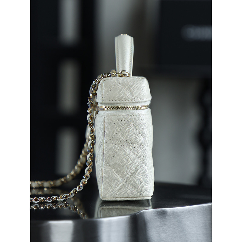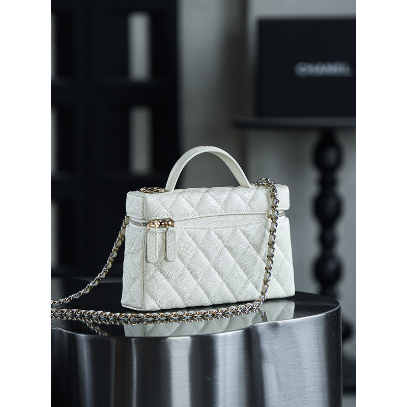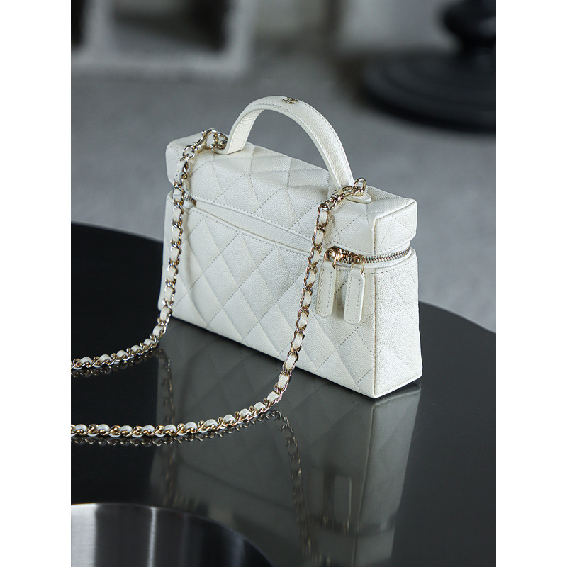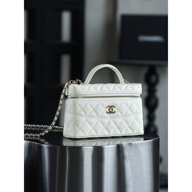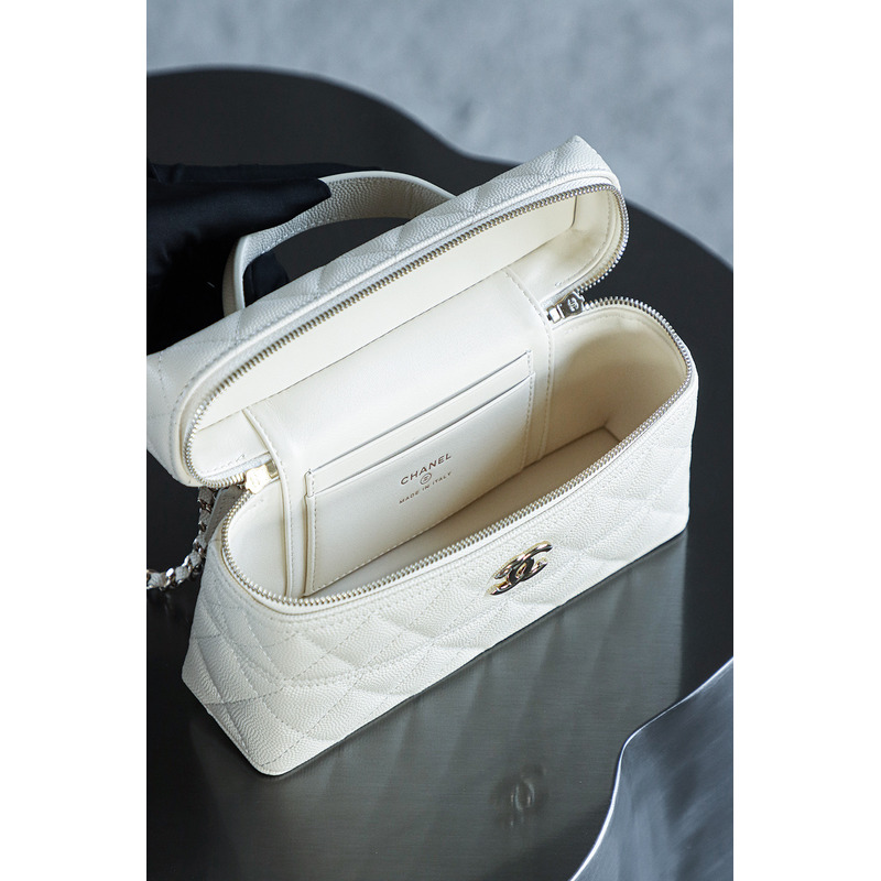 Chanel White Quilted Vanity Case with Top Handle In 24K Gold