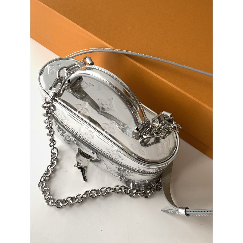 Louis Vuitton Vanity Chain Pouch Coated Canvas Silver