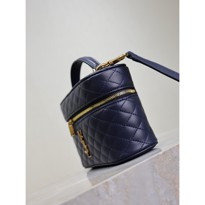 Yves Saint Laurent Cassandra Vanity Case In Quilted Leather In Navy Blue