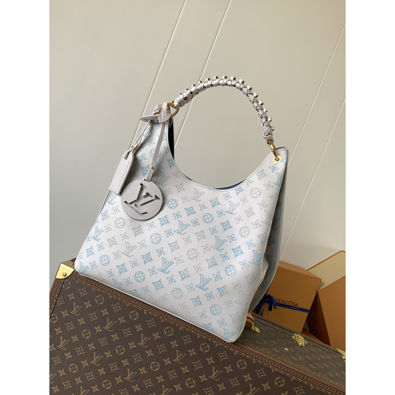 Louis Vuitton Carmel Handbag Perforated Mahina Calfskin Leather Light Grey