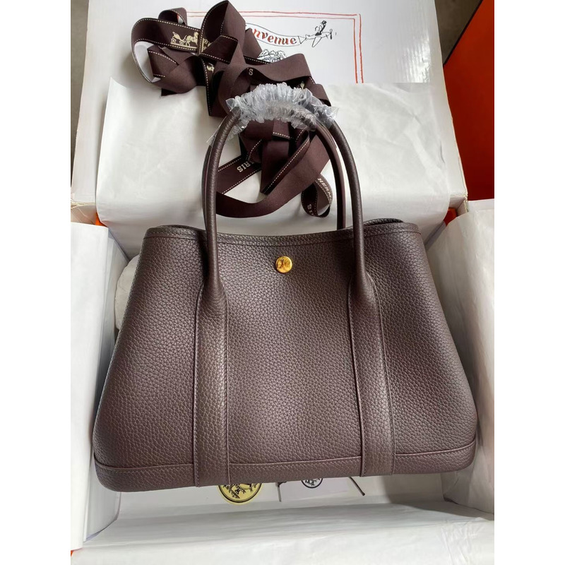 Hermes Neo Garden 35 Bag In Etoupe Taurillon Clemence Leather