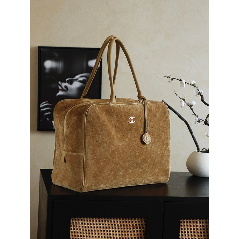 Chanel 26C Boston Hobo Tote Bag Suede In Brown