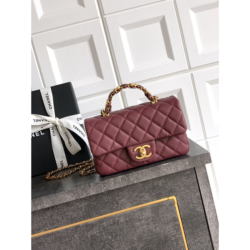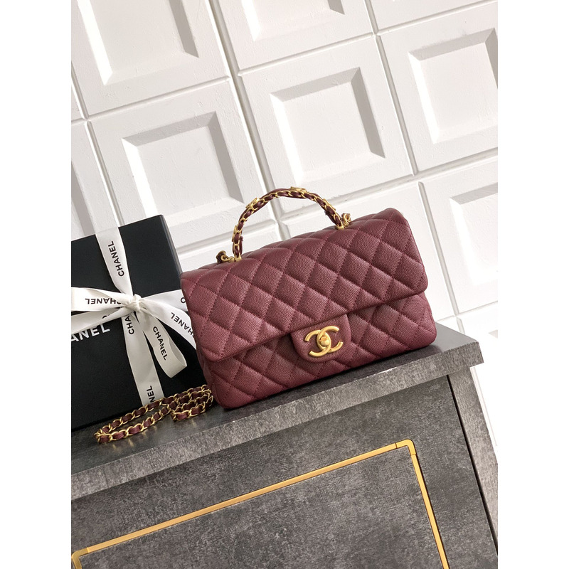 Chanel Medium Top Handle Flap Bag In Burgundy