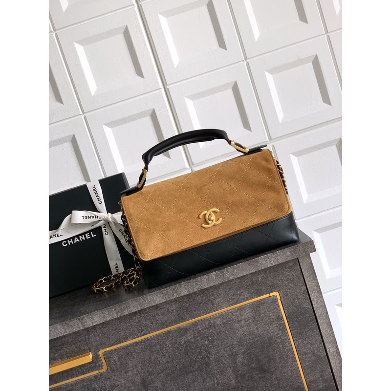 Chanel 19 Large Flap Bag In Two-Tone In Black/Camel