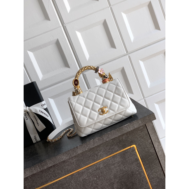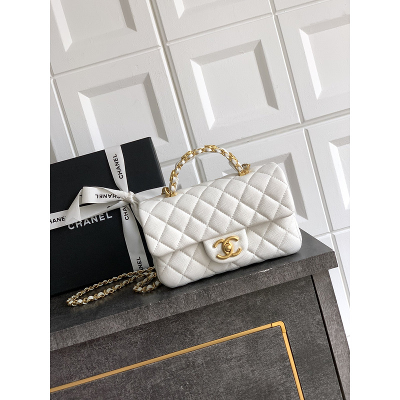 Chanel Classic Flap Bag With Top Handle Leather In White