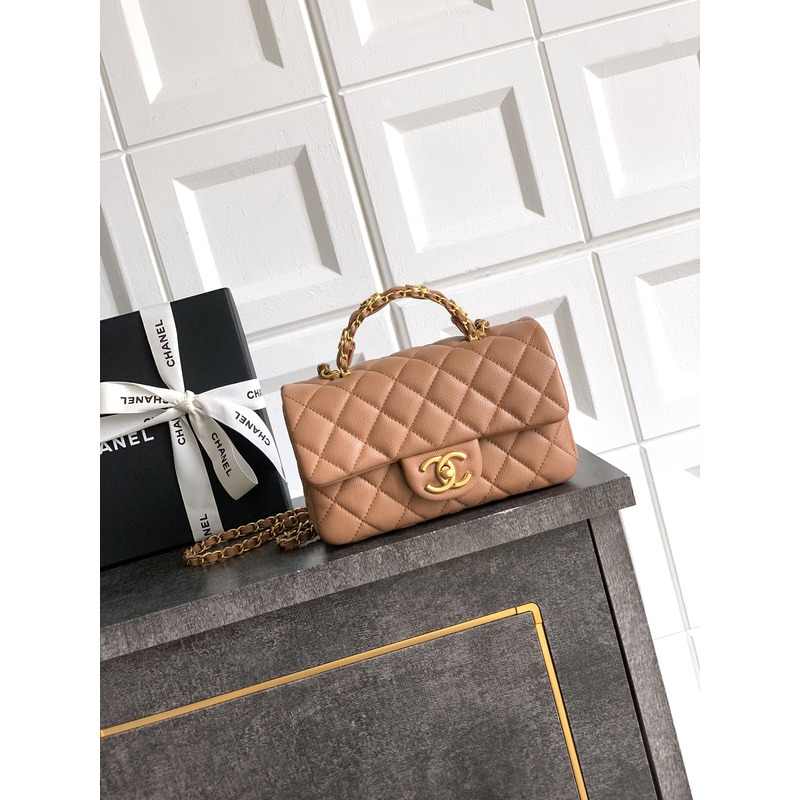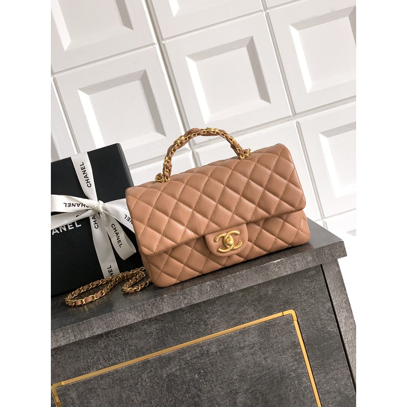 Chanel Small Classic Flap Bag With Top Handle Leather In Beige