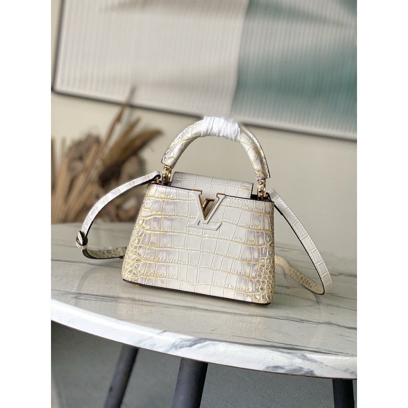 Louis Vuitton Capucines Mini Ombré Crocodile Handbag In White And Gold