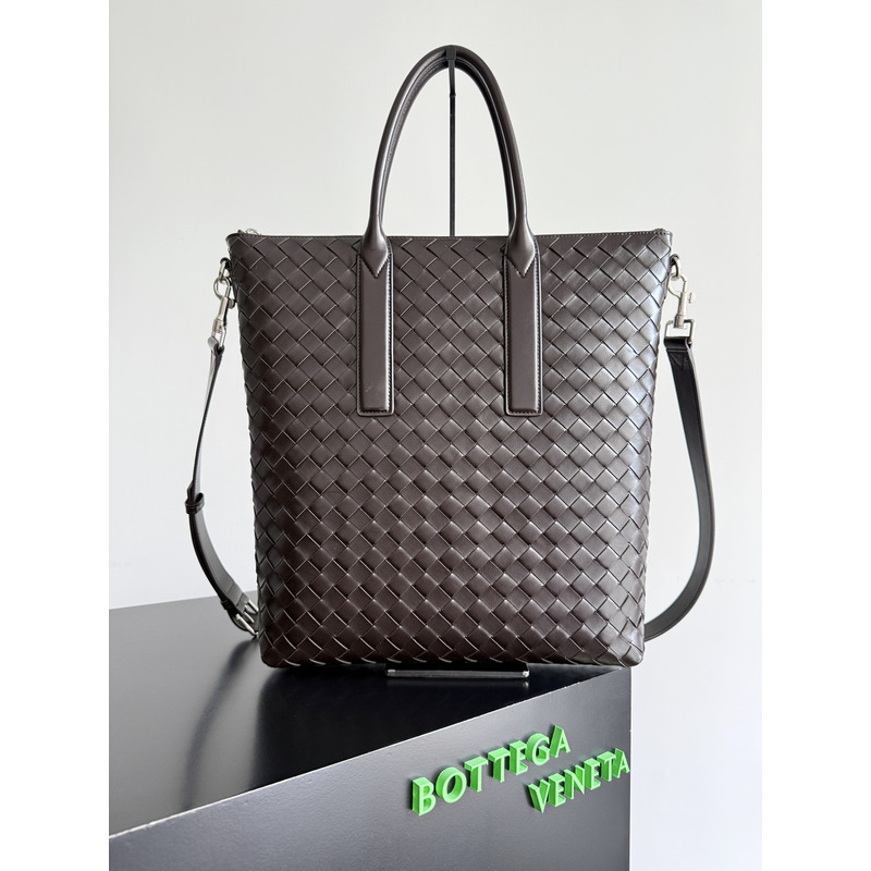 Bottega Veneta Intrecciato Zipped North-South Tote Dark Brown