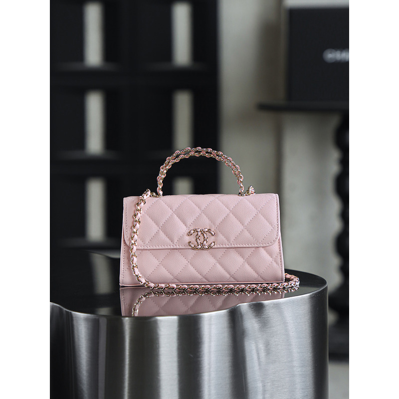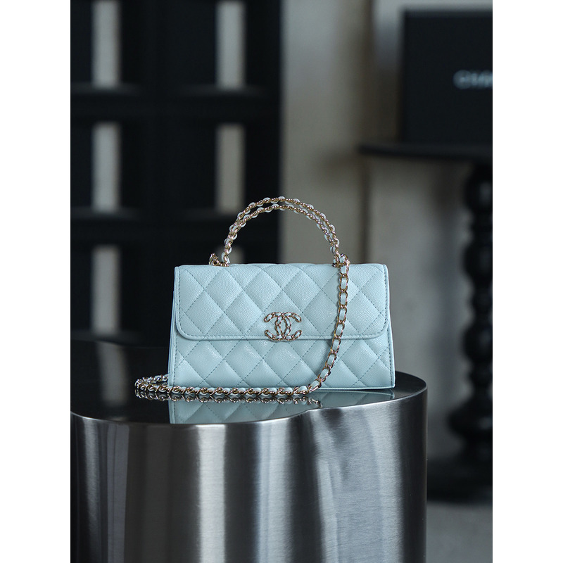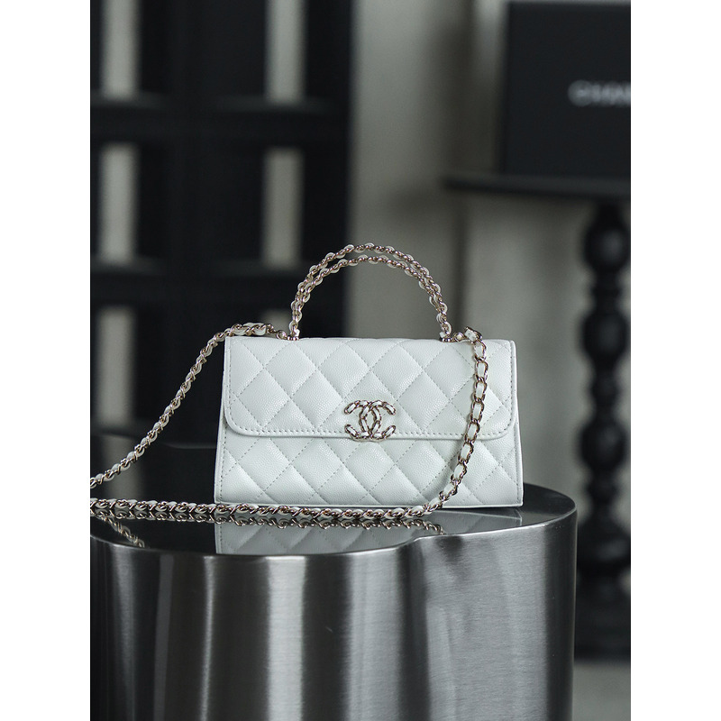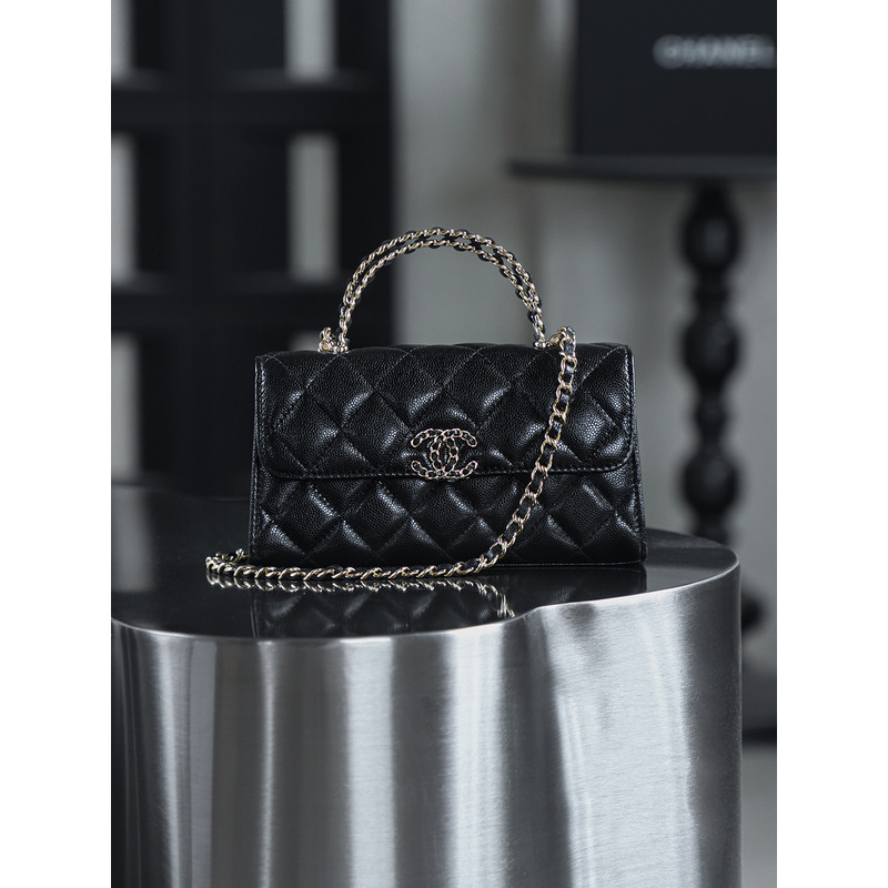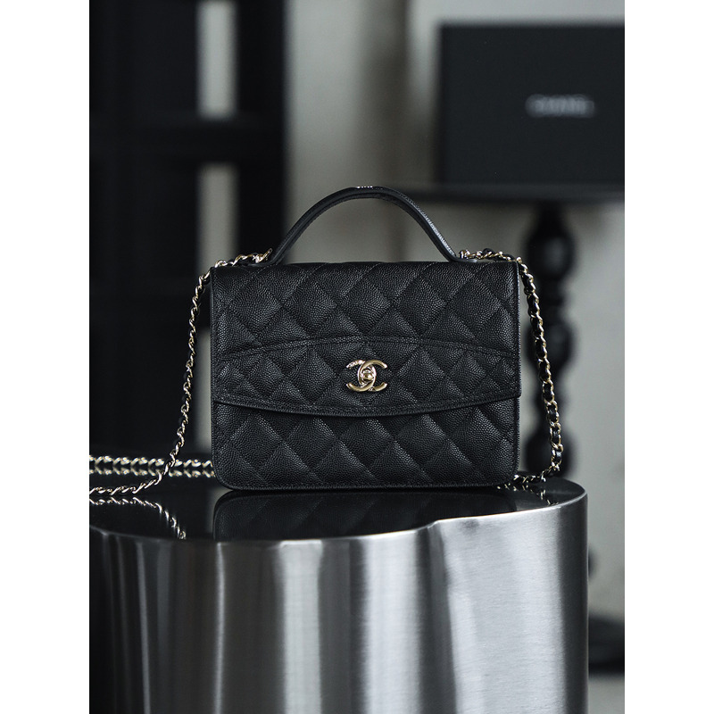 Chanel Caviar Quilted Double Chain Top Handle Flap With Chain Black