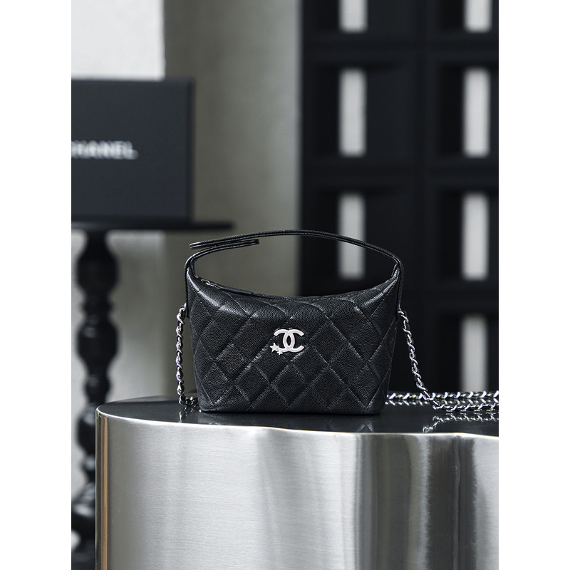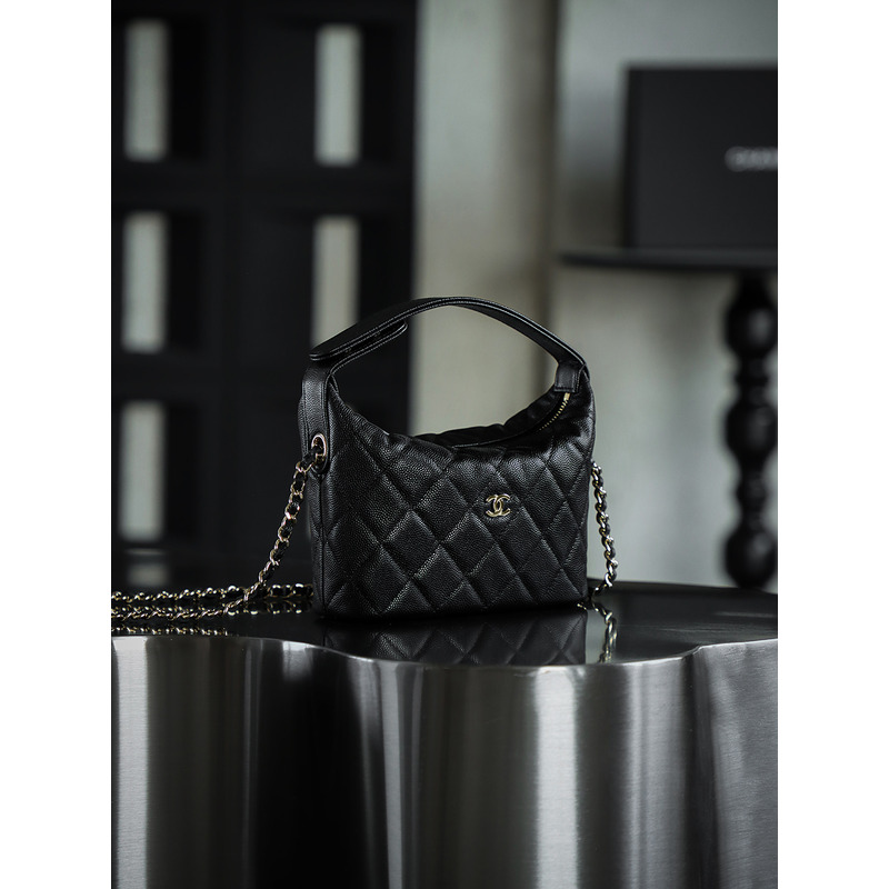 Chanel Black Quilted Hobo Handbag with 24K Silver