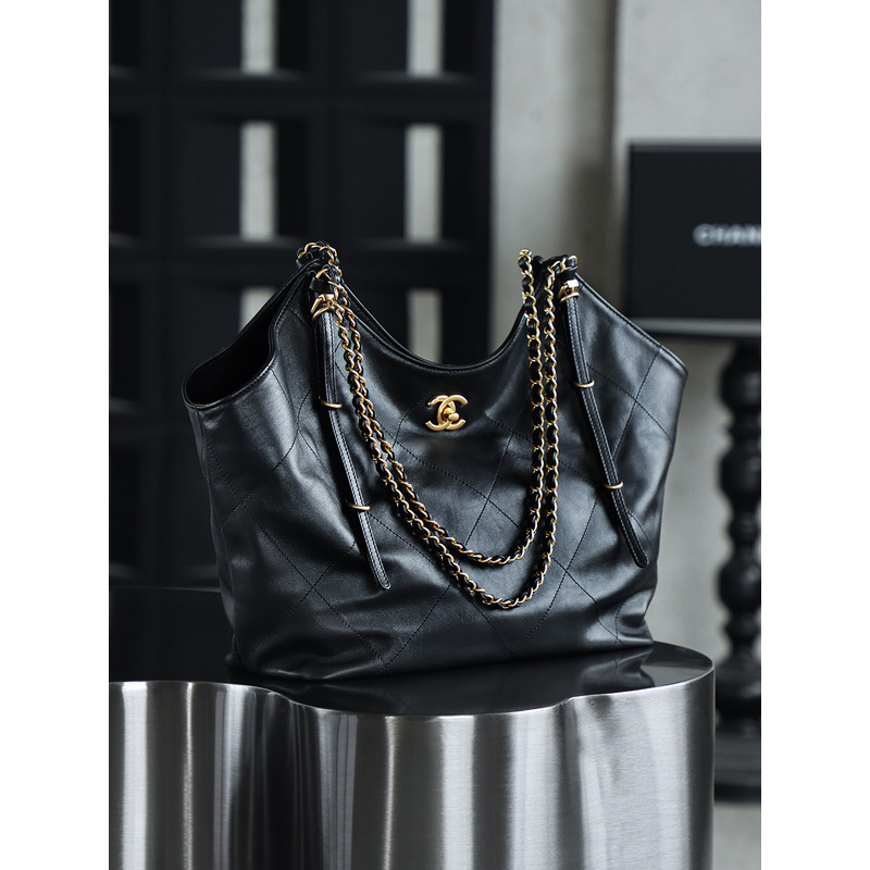 Chanel Shopping Bag Calfskin & Gold-tone Metal, Black