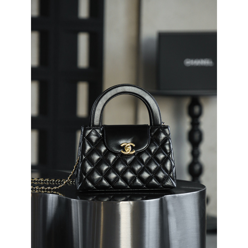 Chanel Mini Flap Bag Med Top Handle In Black 24K Glod