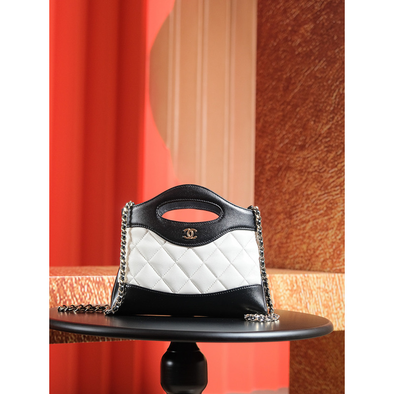 Chanel Quilted Leather & 24K Gold Mental Chain - Strap Bag In Black & White
