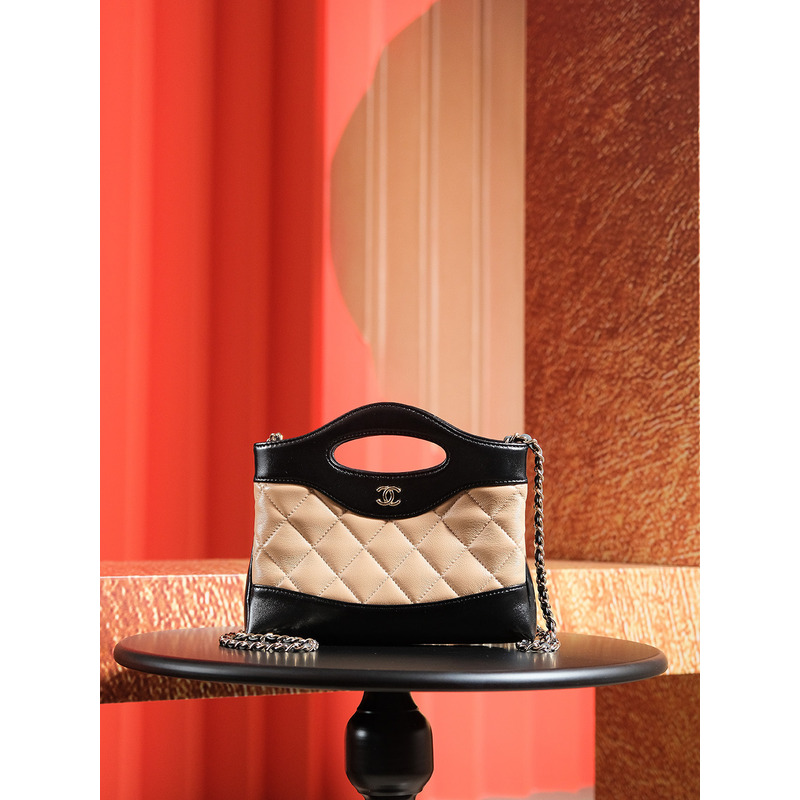 Chanel Quilted Leather & 24K Gold Mental Chain - Strap Bag In Black & Beige