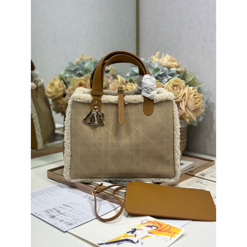 Dior DiorAlps Mini Dior Toujours Bag Beige Macrocannage Suede
