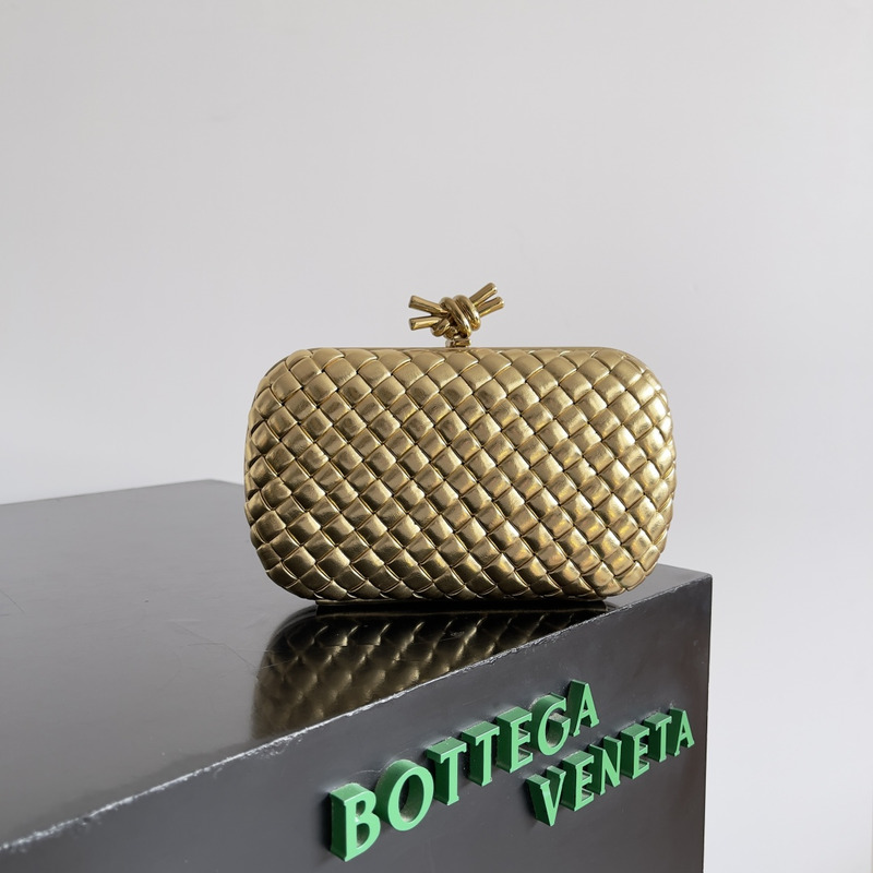 Bottega Veneta Scalloped Leather Knot Clutch In Light Yellow