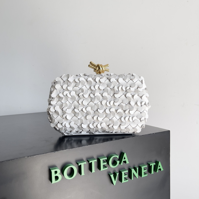 Bottega Veneta Scalloped Leather Knot Clutch In White