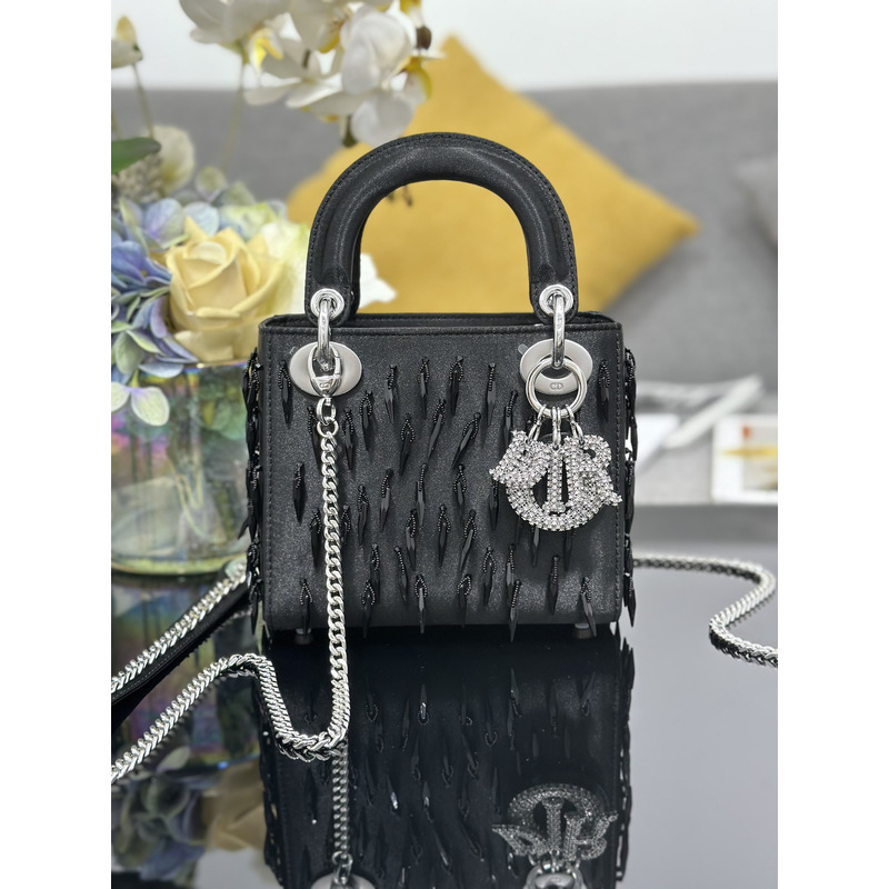 Dior Mini Lady Dior Bag In Black With Fringe And Crystal Embellishments