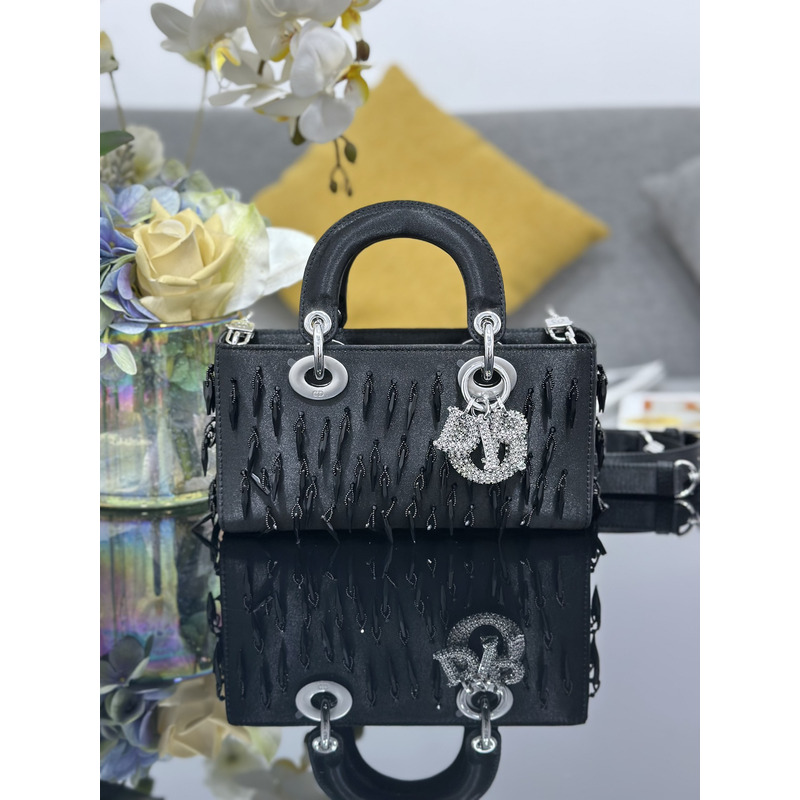 Dior Small Lady D-Joy Bag In Black With Fringe And Crystal Embellishments