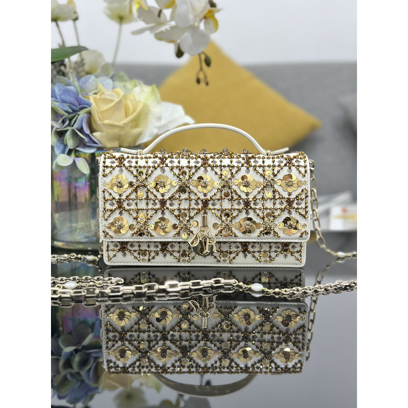 Dior Or My Dior Mini Bag Creamy White Cannage Calfskin Leather Embellished With Gold-Tone Sequin Embroidery