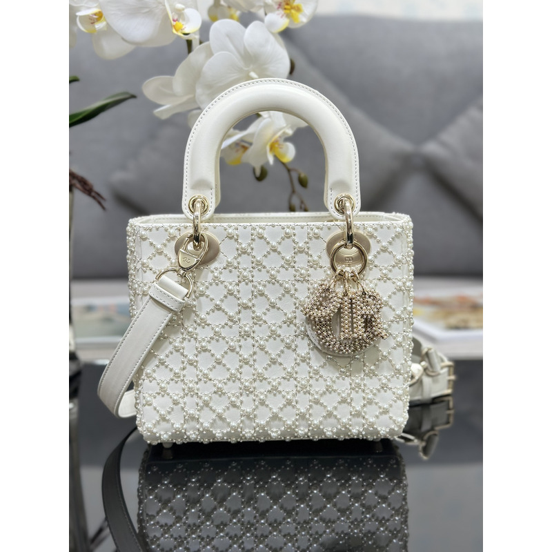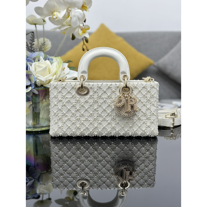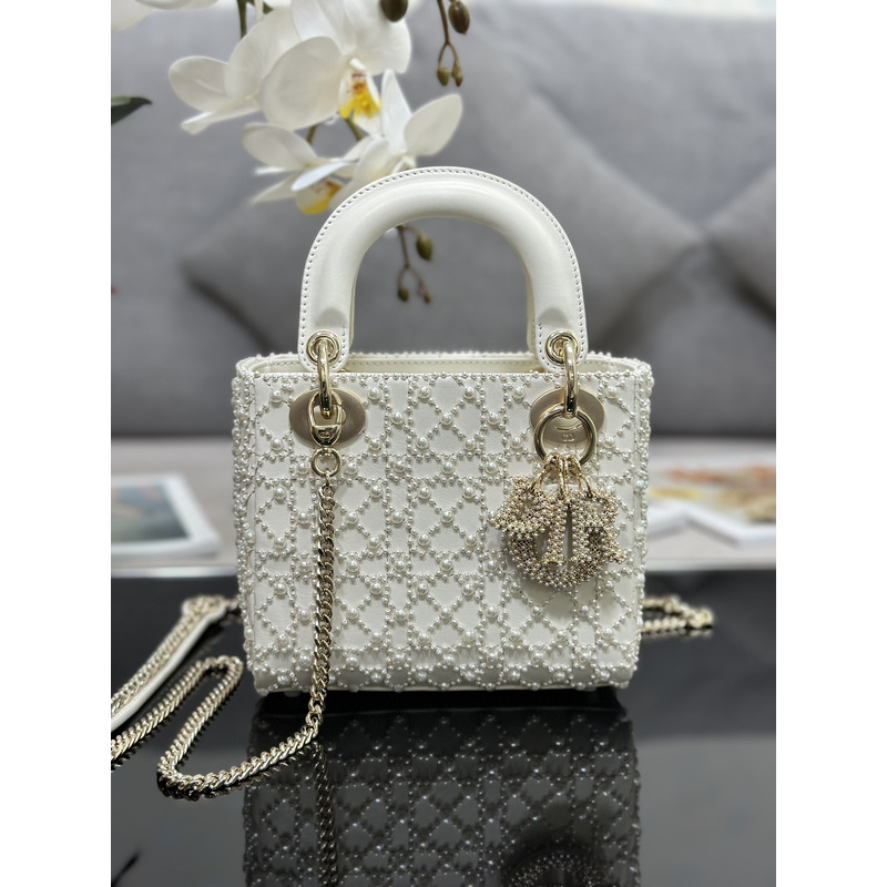Dior Small Lady Dior Bag White Lambskin With Pearl