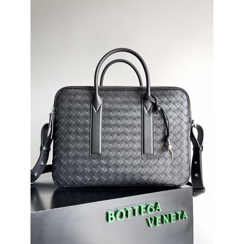 Bottega Veneta Getaway Briefcase Intrecciato Leather Black