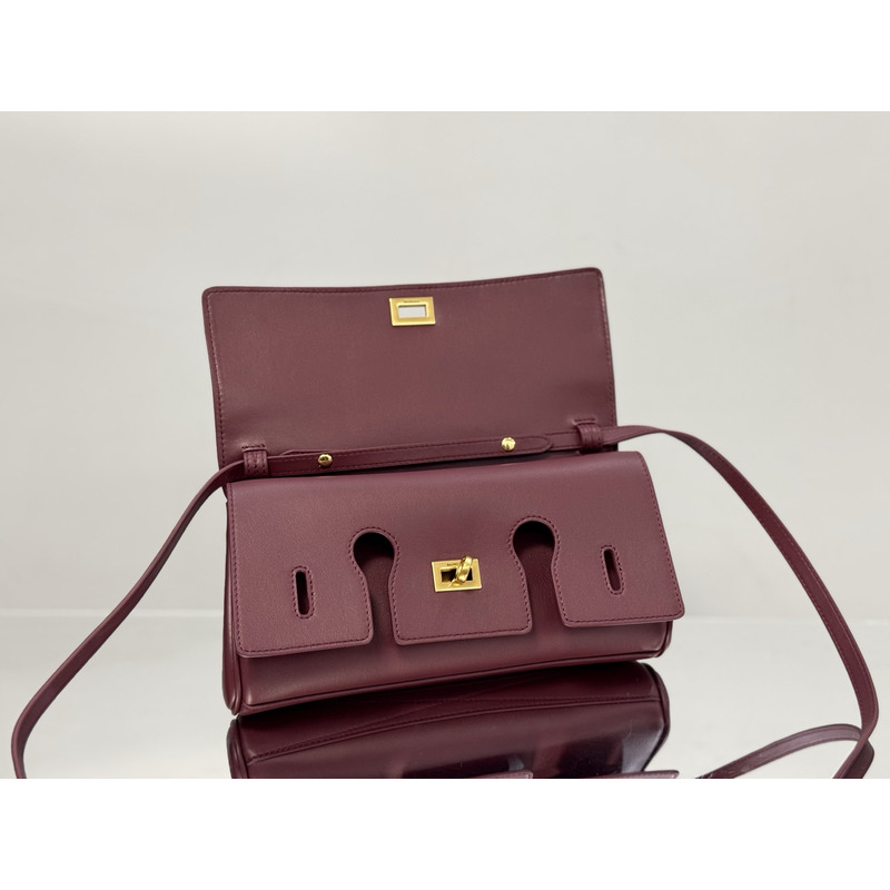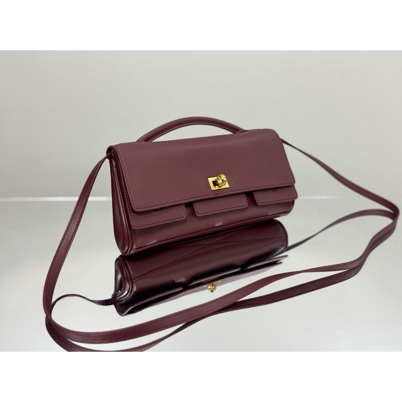 Balenciaga Bel Air Small Clutch On Strap Dark Burgundy Red