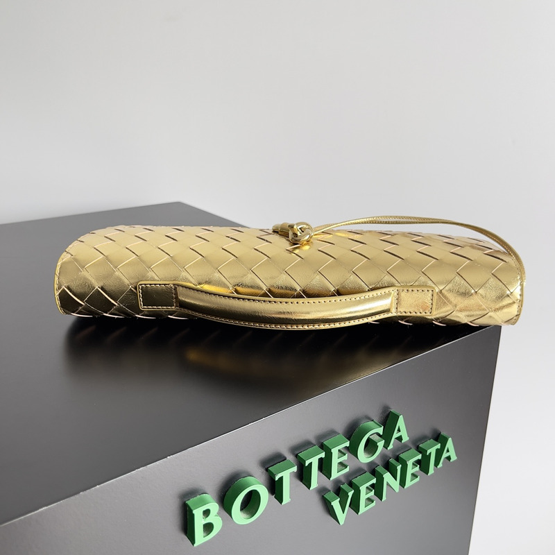 Bottega Veneta Andiamo Clutch Calf Leather In Light Gold