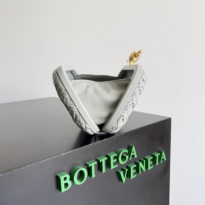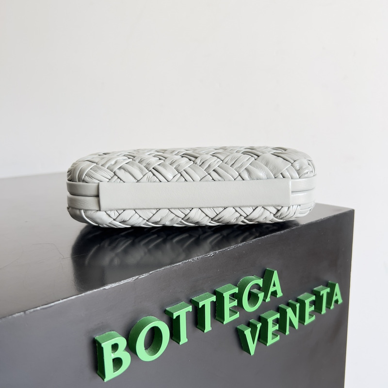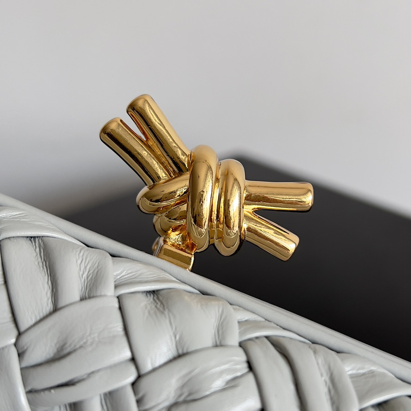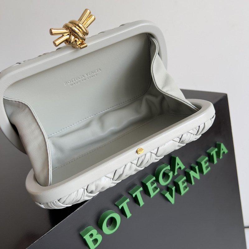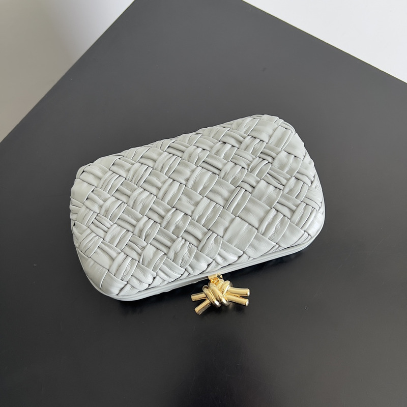 Bottega Veneta Knot Pleated Leather Clutch Bag In Light Grey