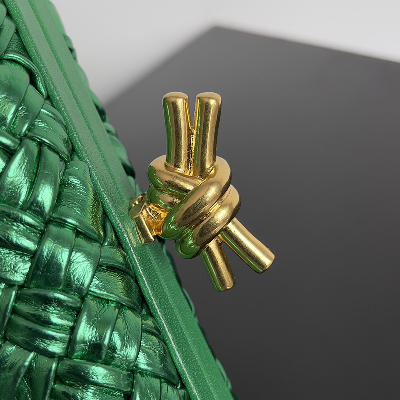 Bottega Veneta Knot Pleated Leather Clutch Bag In Metallic Green
