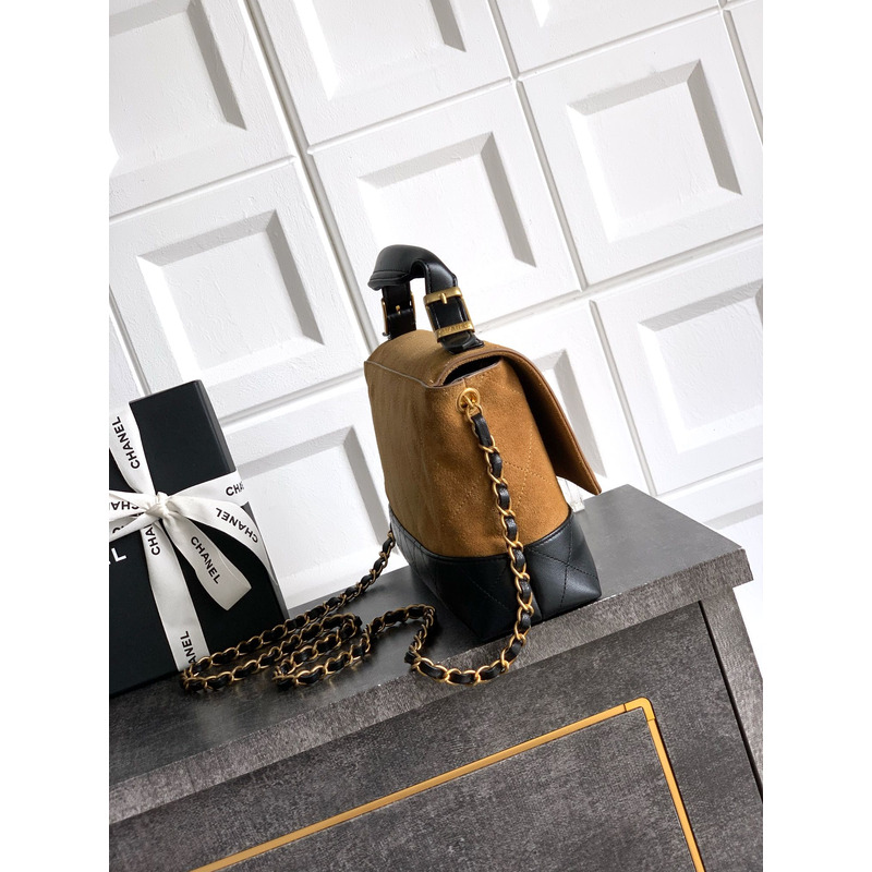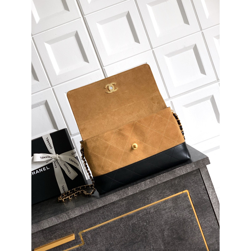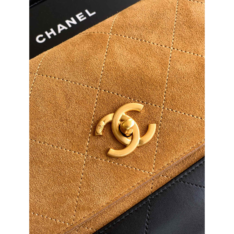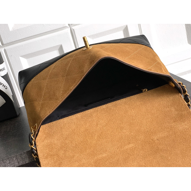 Chanel 19 Large Flap Bag In Two-Tone In Black/Camel