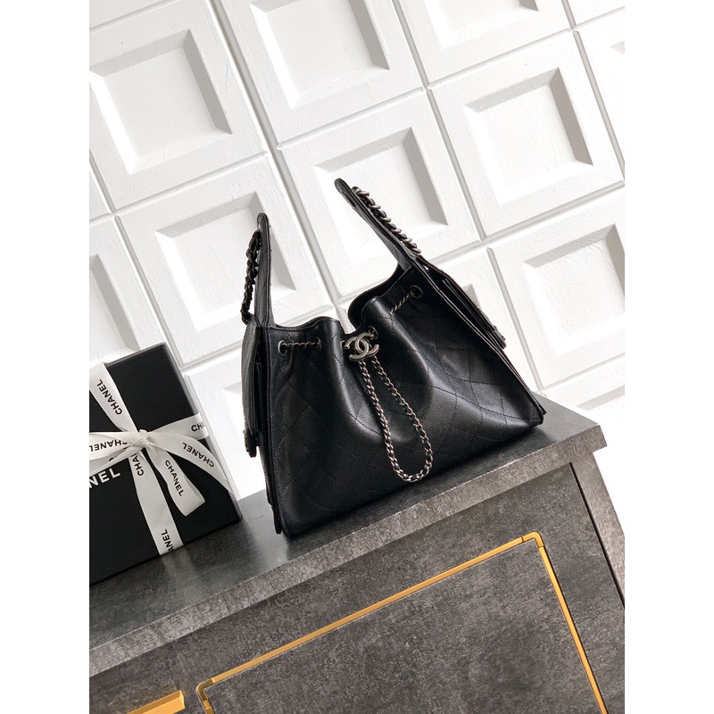 Chanel Black Quilted Leather Handbag With Signature Chain Strap