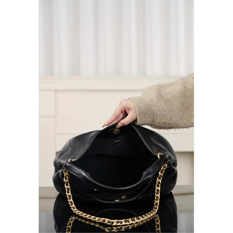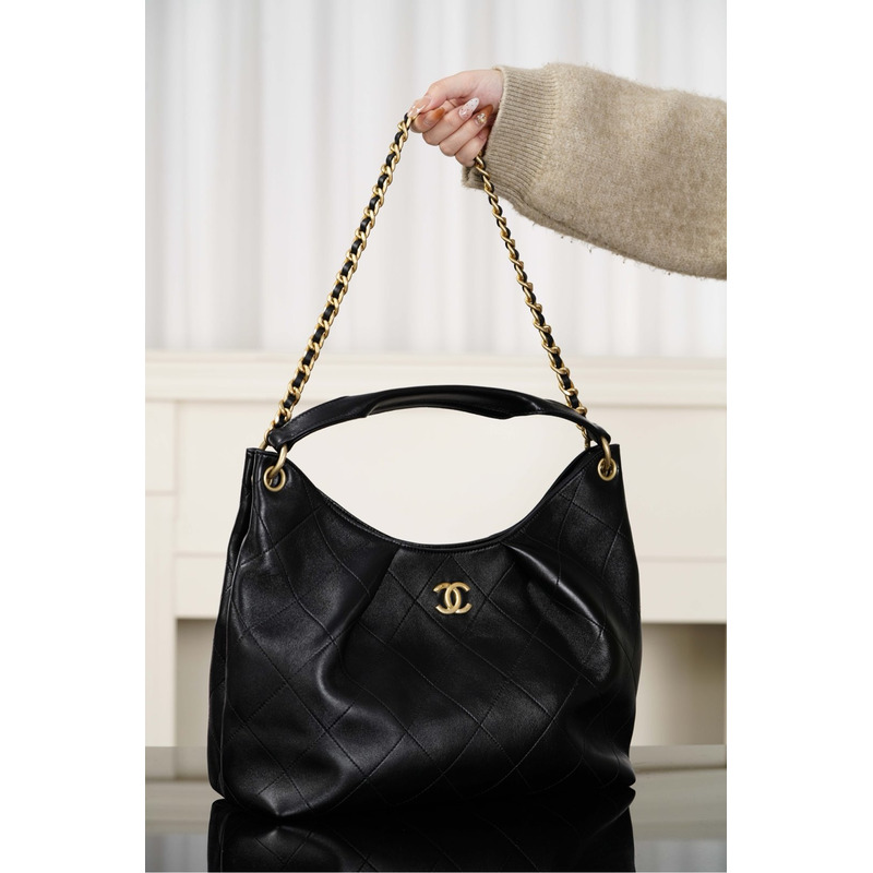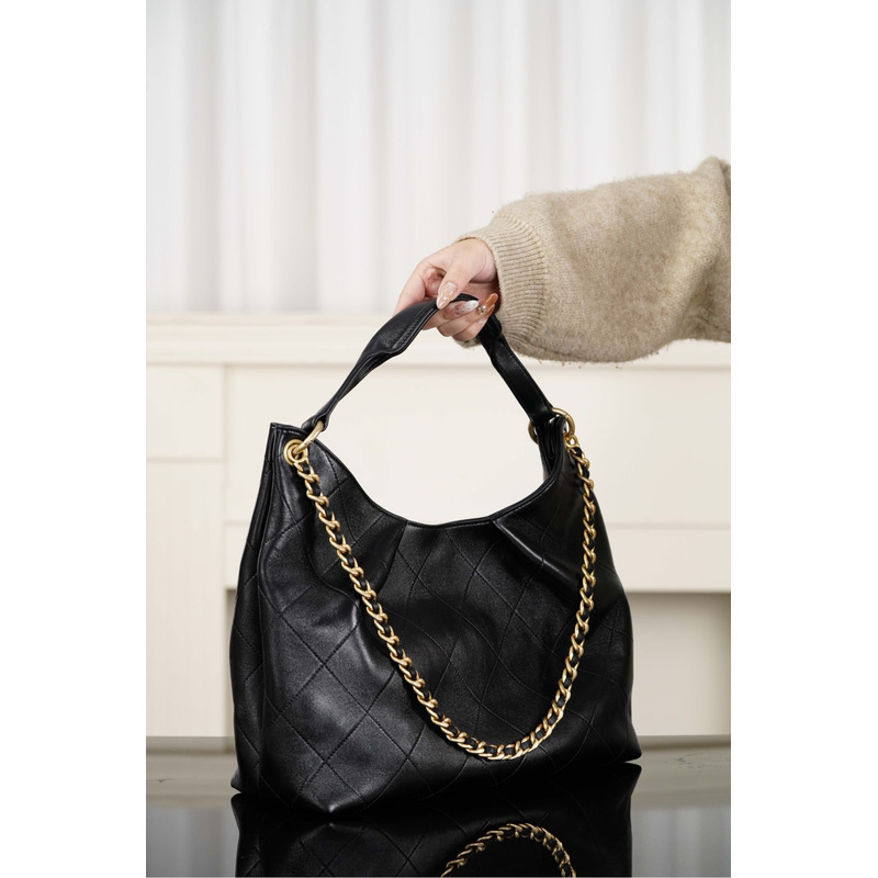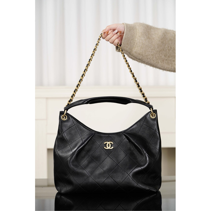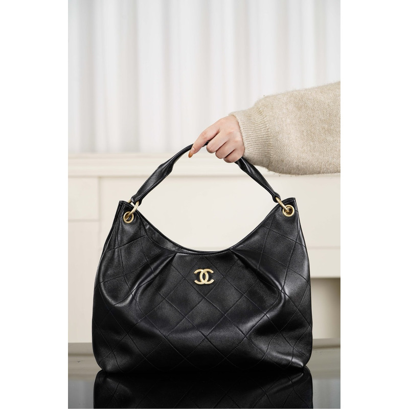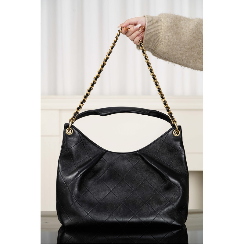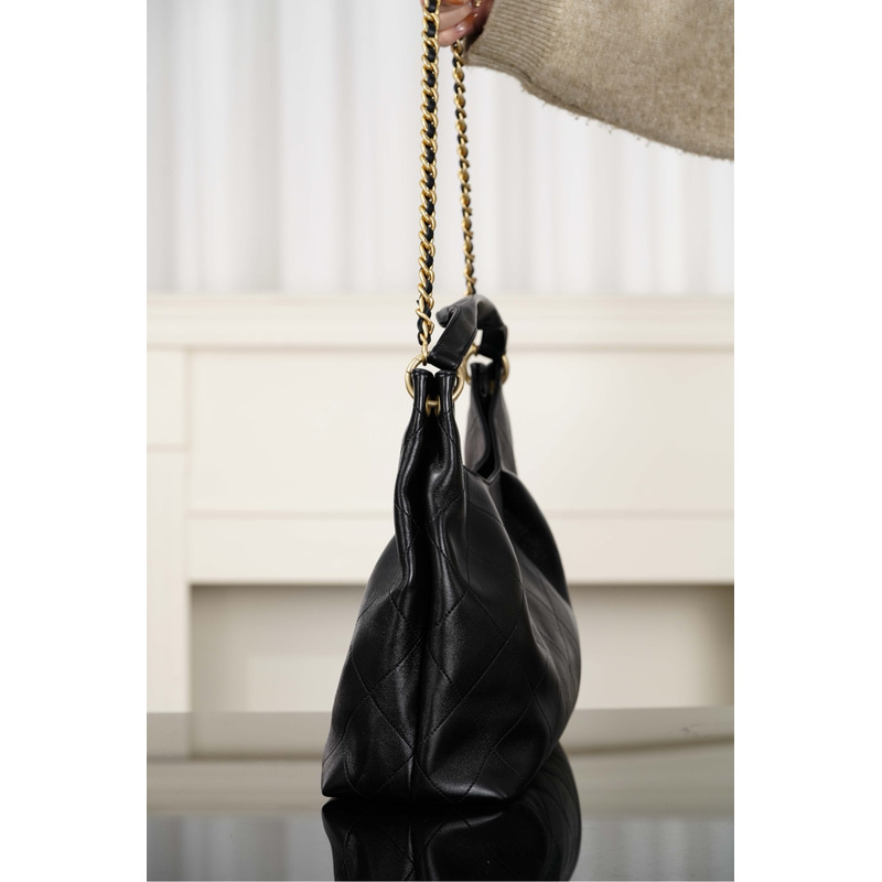 Chanel Black Quilted Leather Hobo Bag With Gold-Tone Hardware