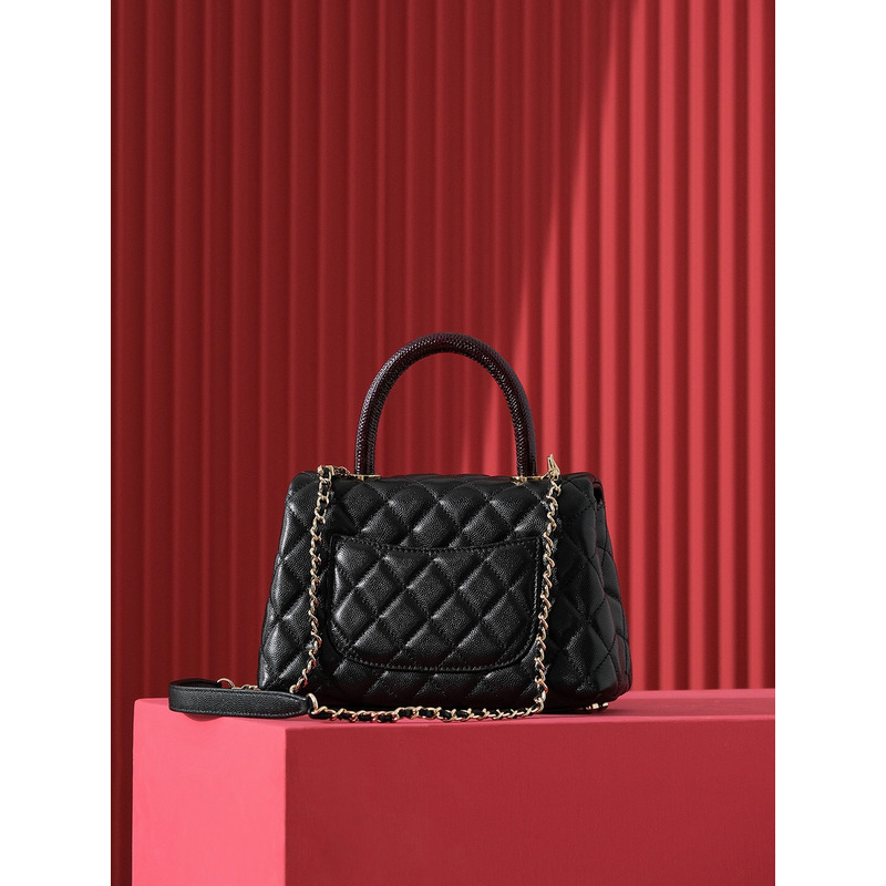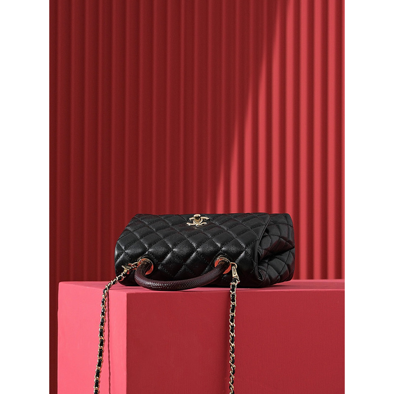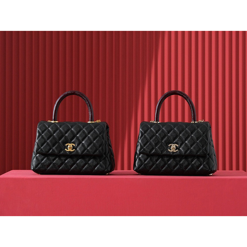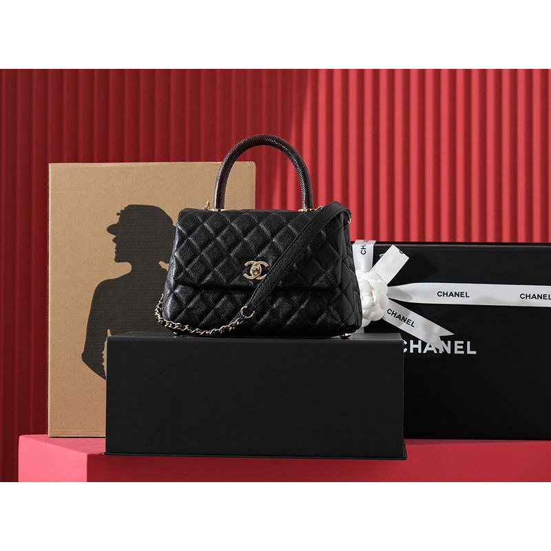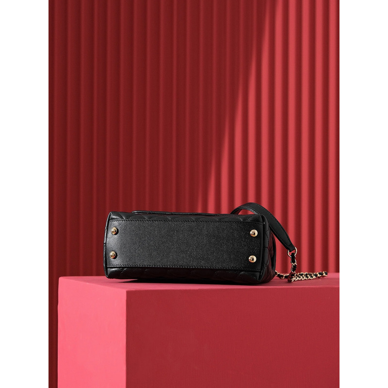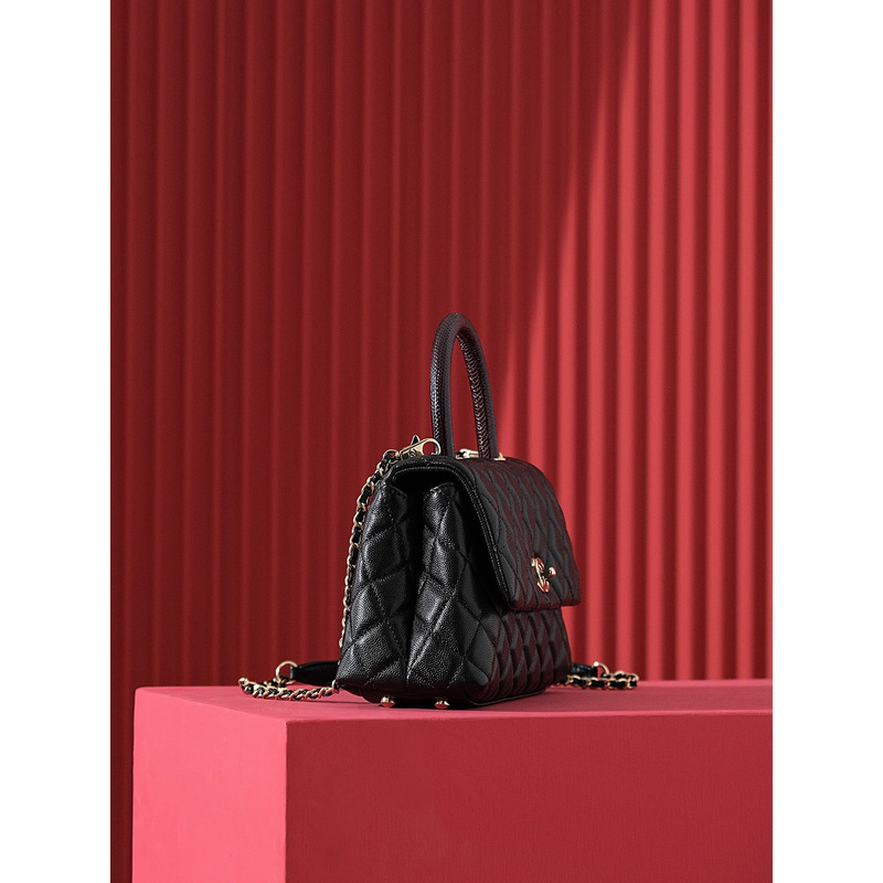 Chanel Caviar Quilted Coco Flap 24K Gold Handbag Black