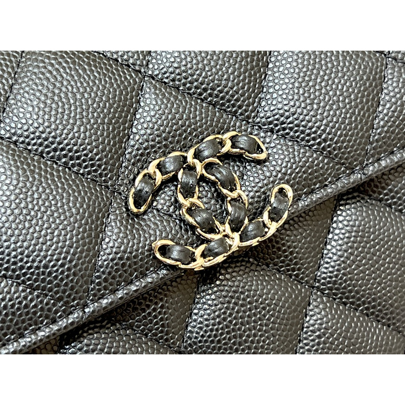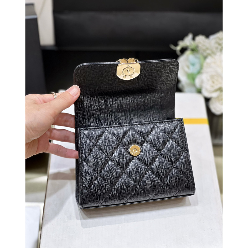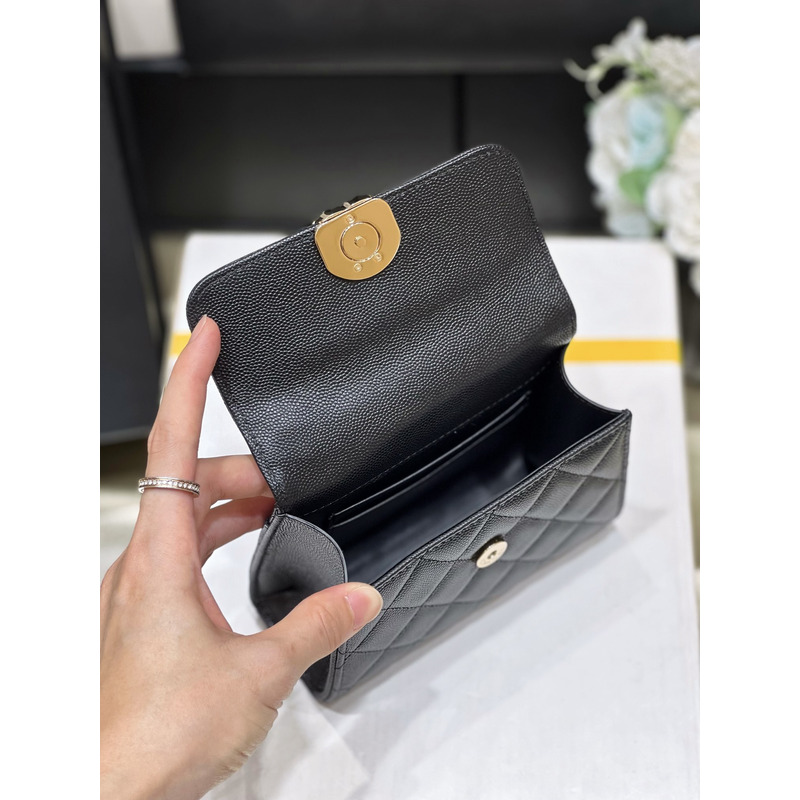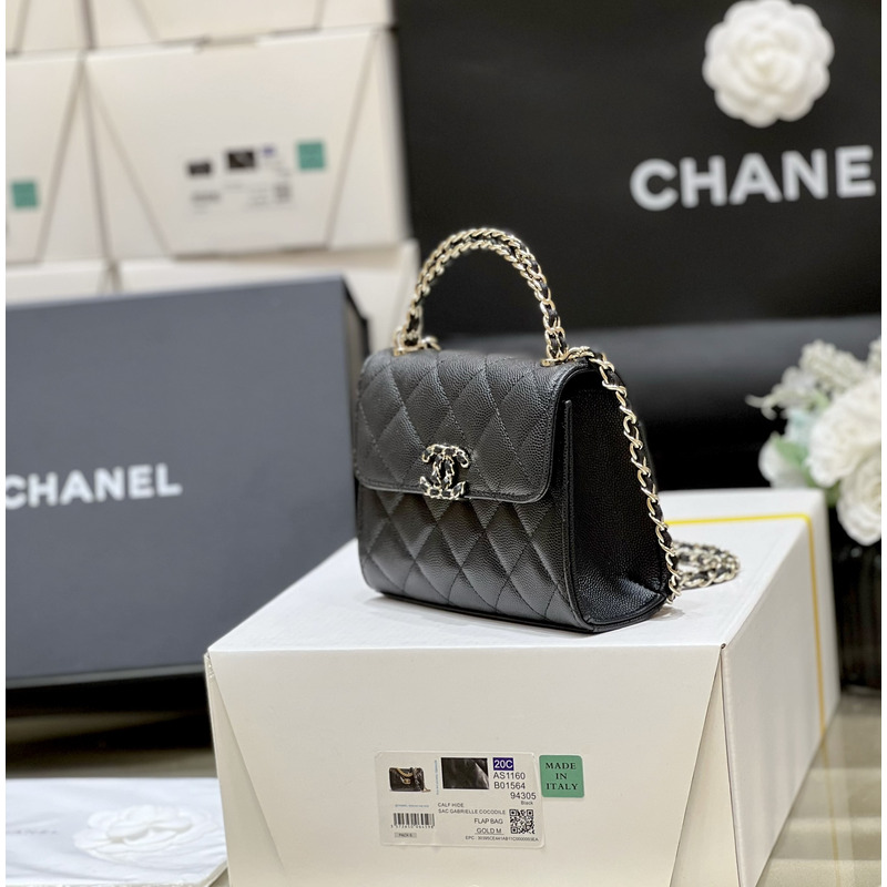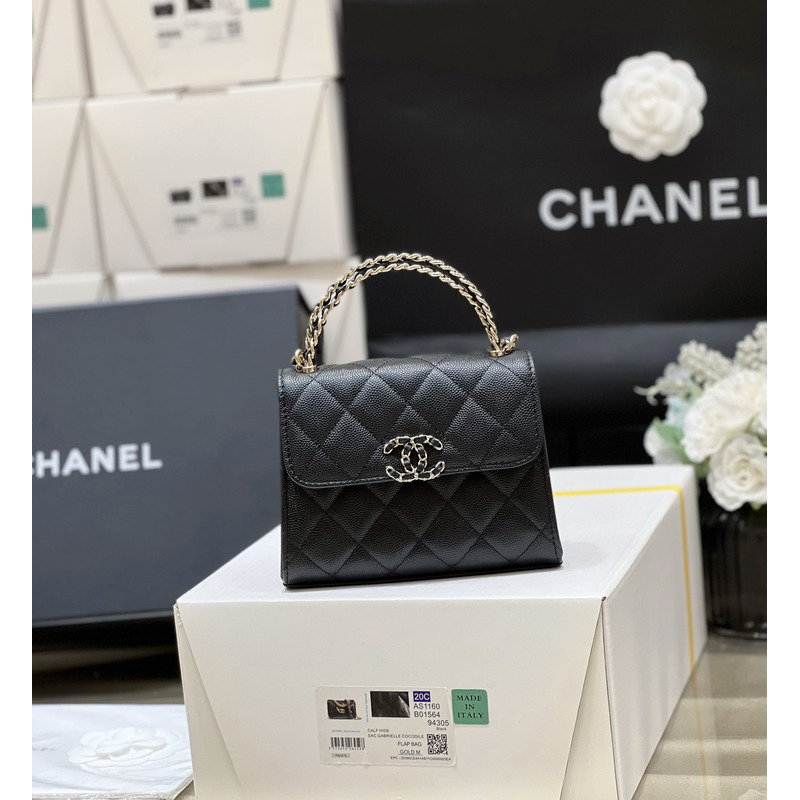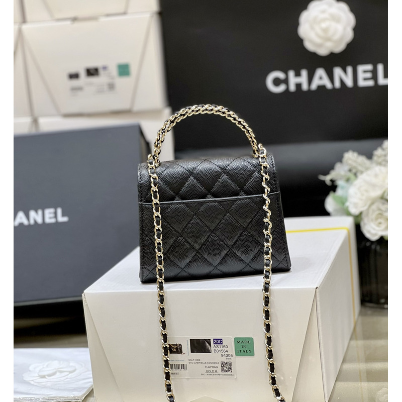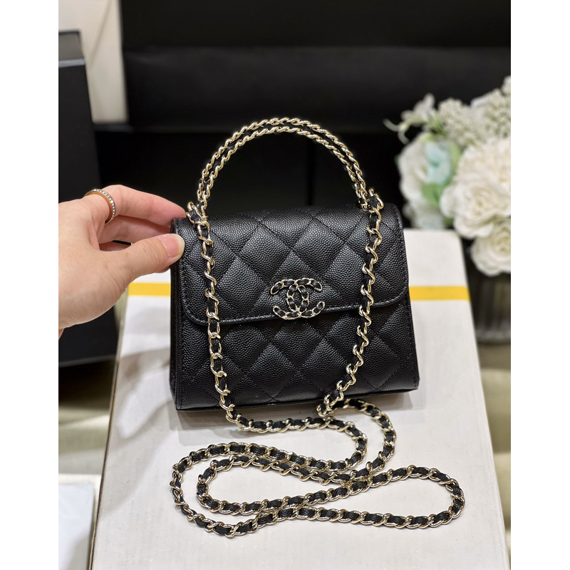 Chanel Caviar Quilted Double Chain Top Handle Flap With Chain Black