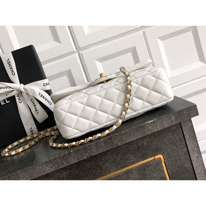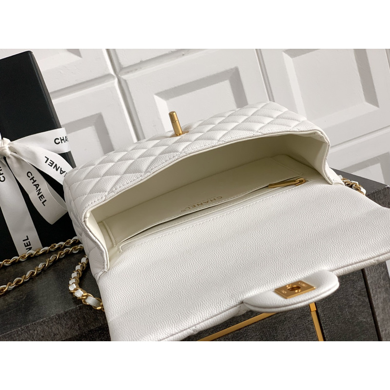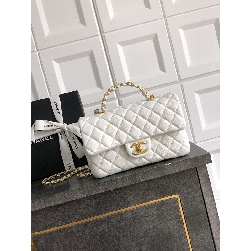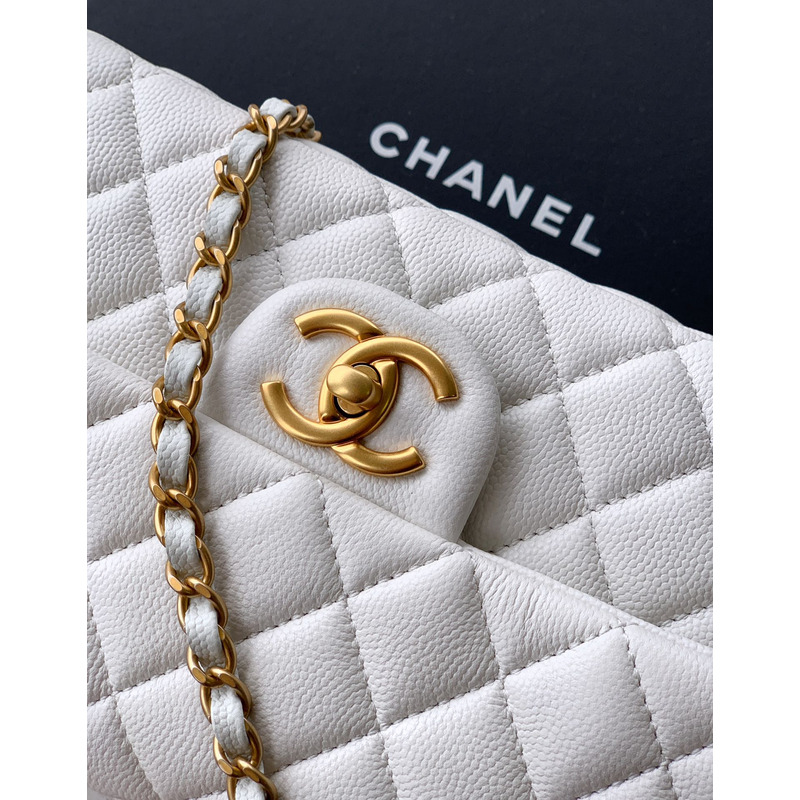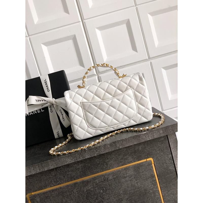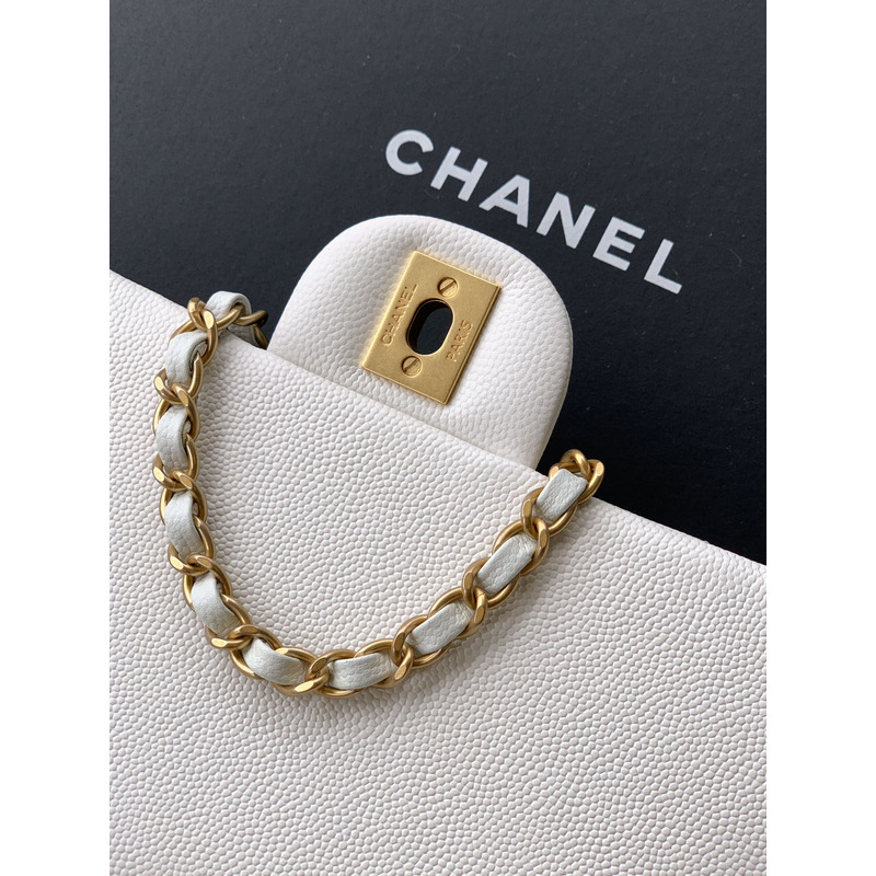 Chanel Classic Flap Bag With Top Handle Leather In Warm White