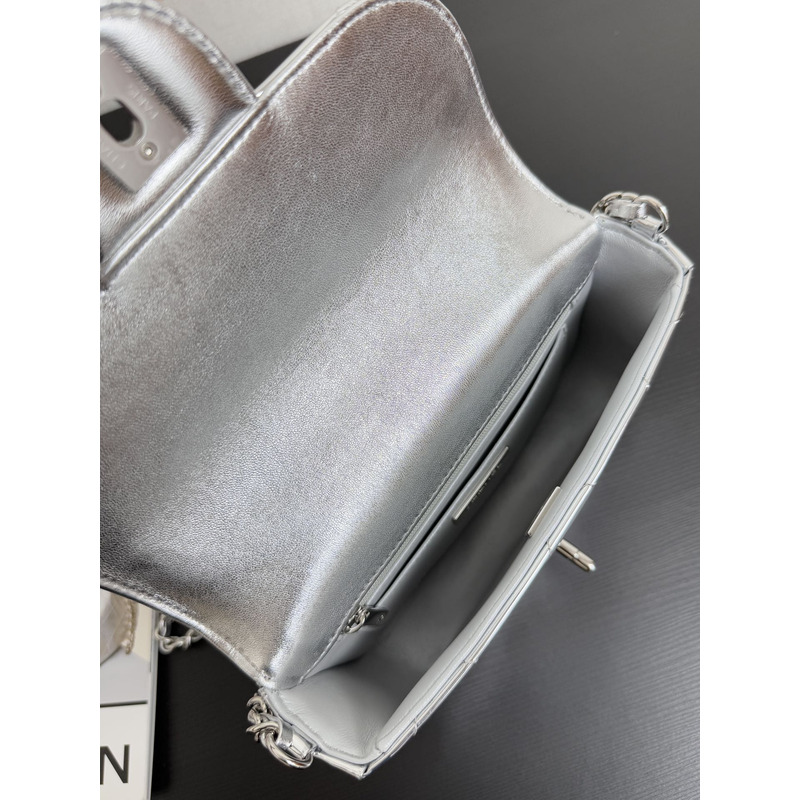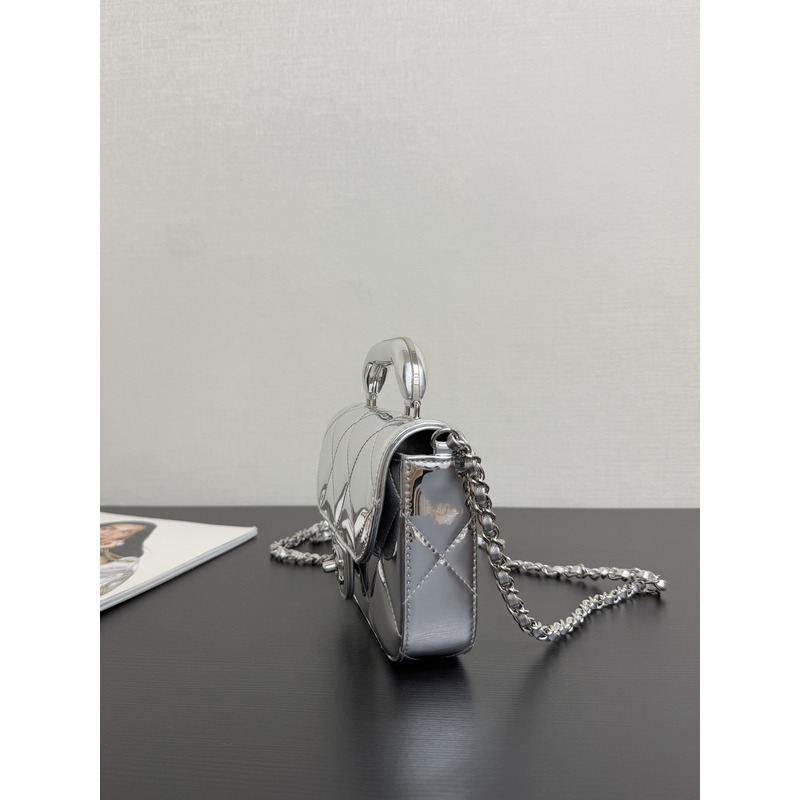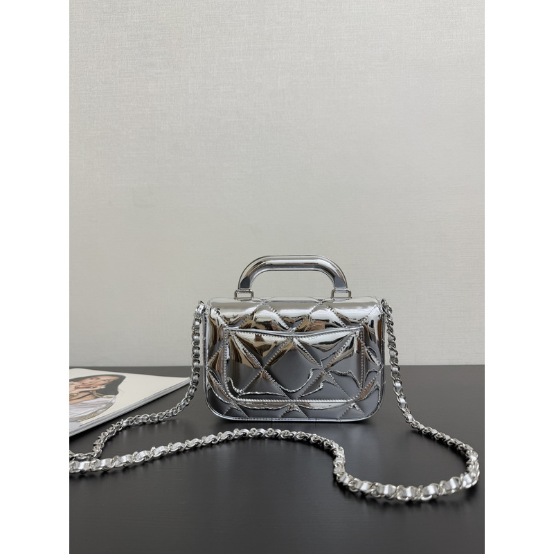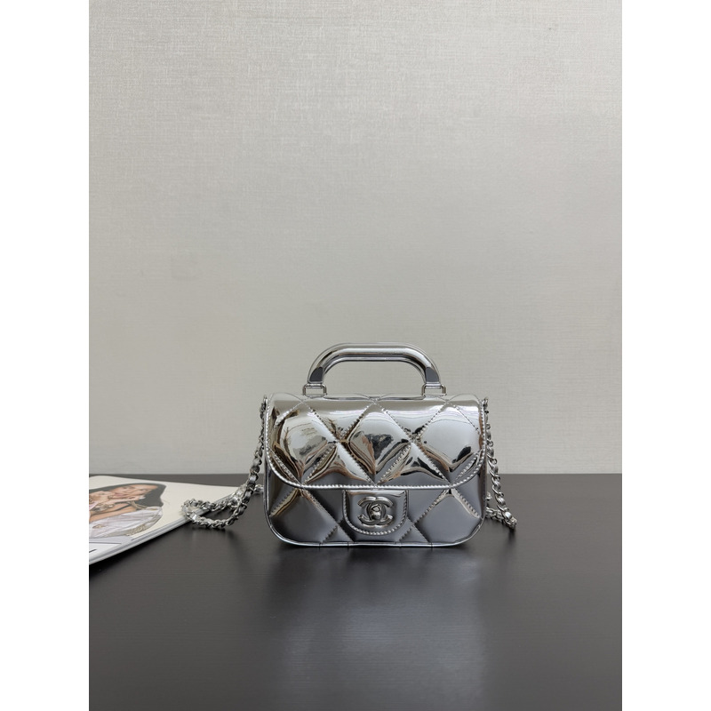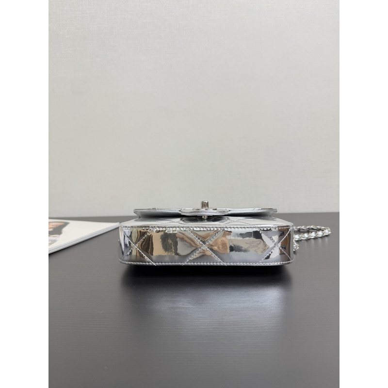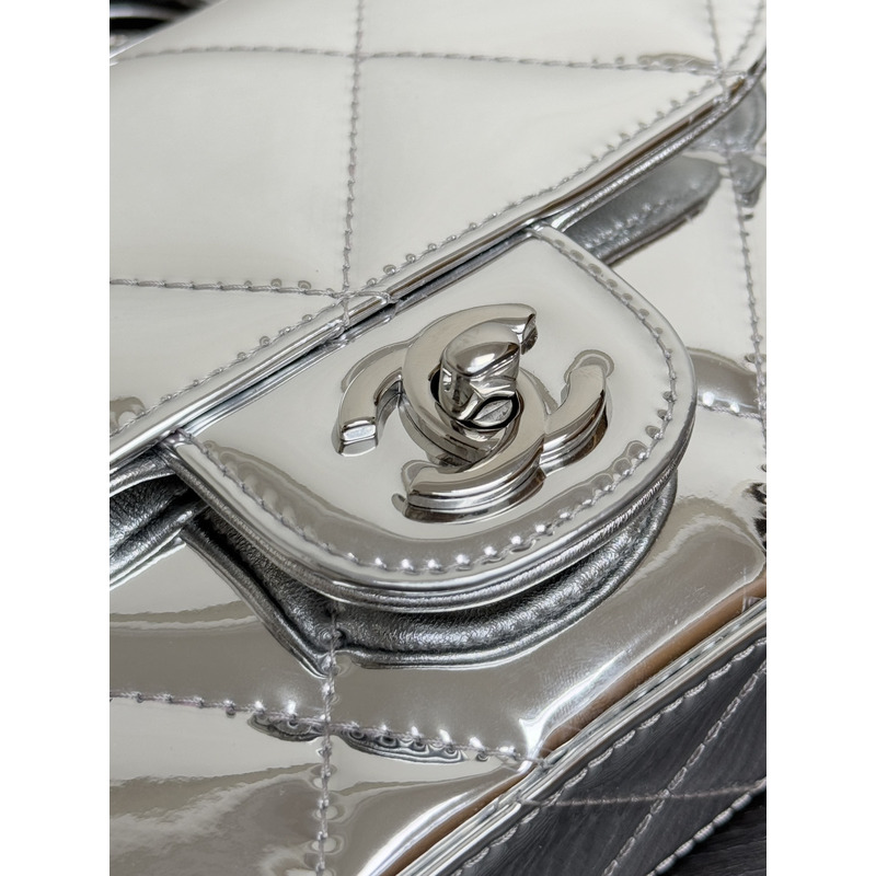Chanel Clutch With Chain Patent Calfskin In Silver